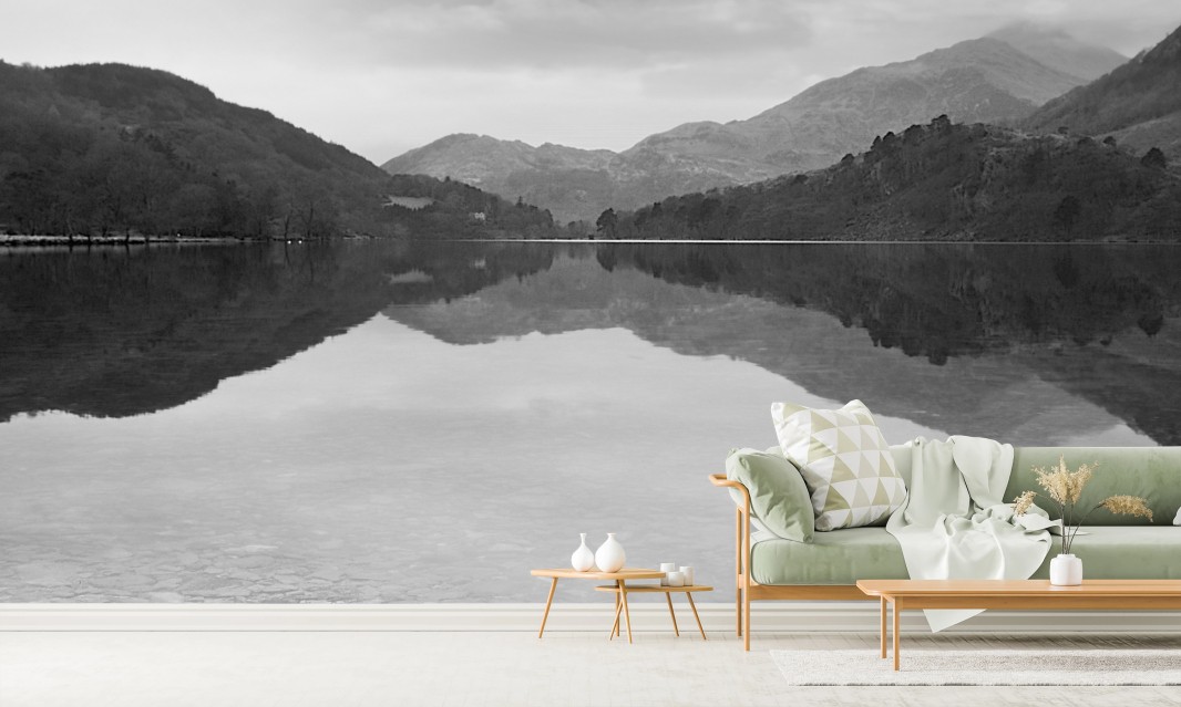Fototapeta Spokojne jezioro z górskim odbiciem