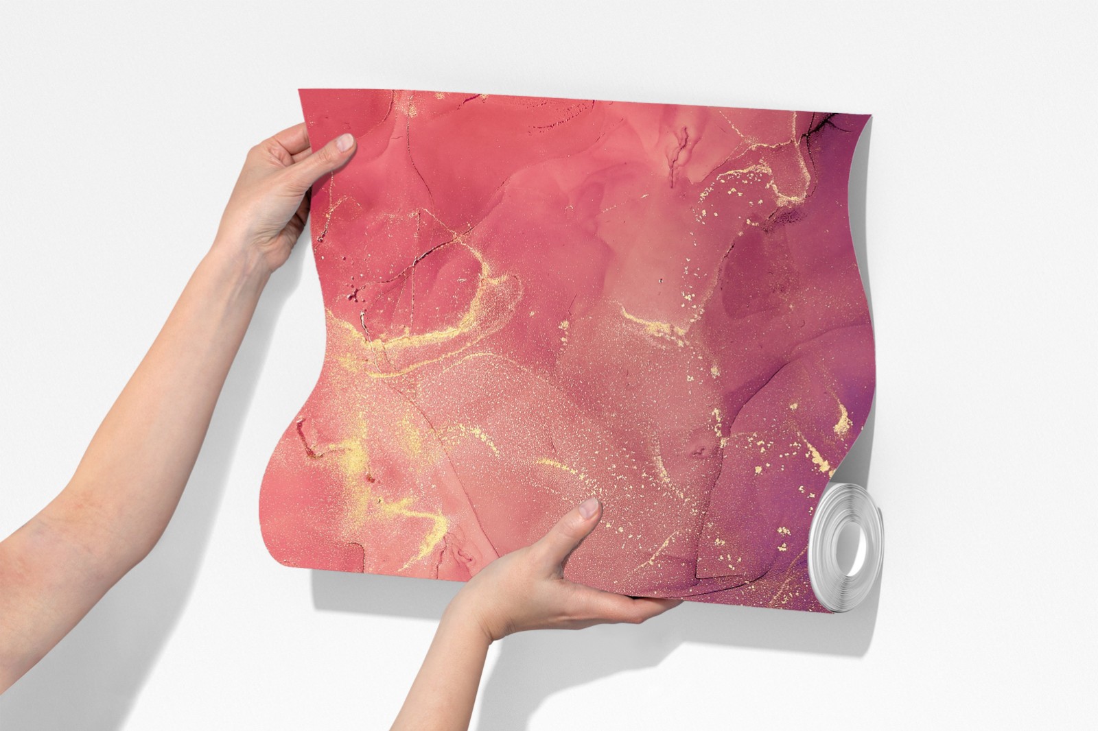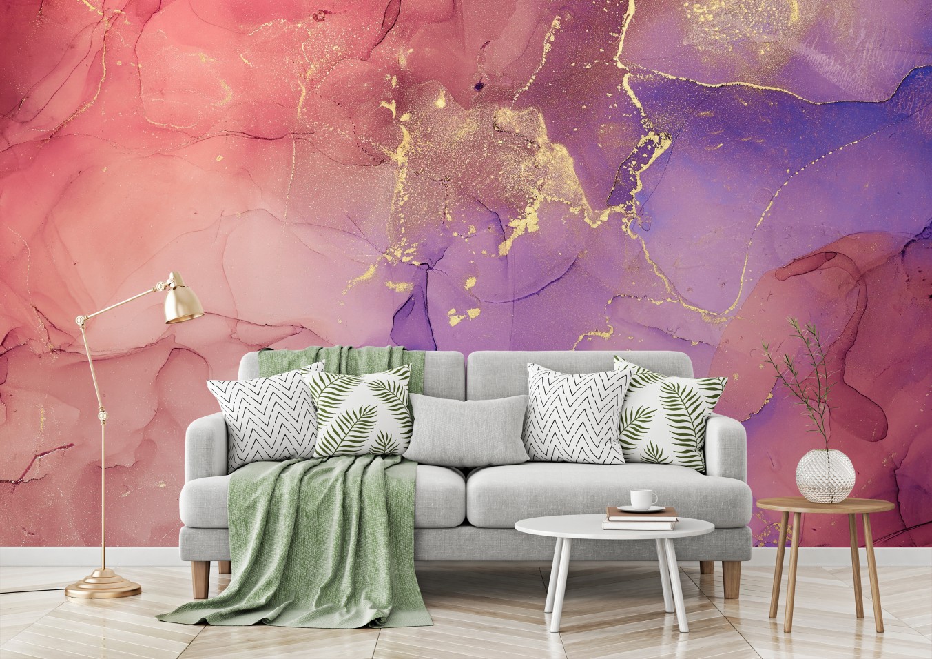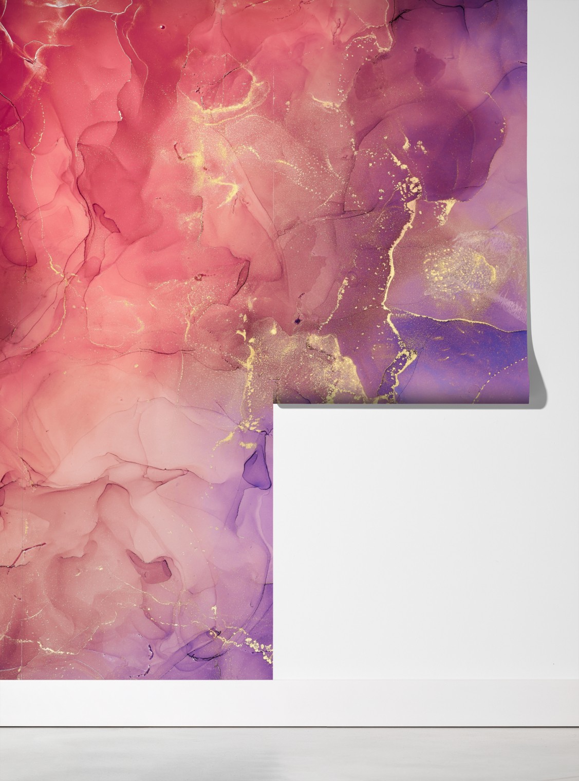 Odśwież swoje wnętrze eterycznymi różowo-fioletowymi marmurowymi smugami ze złotymi żyłkami, które dodają nowoczesnej elegancji i spokoju.