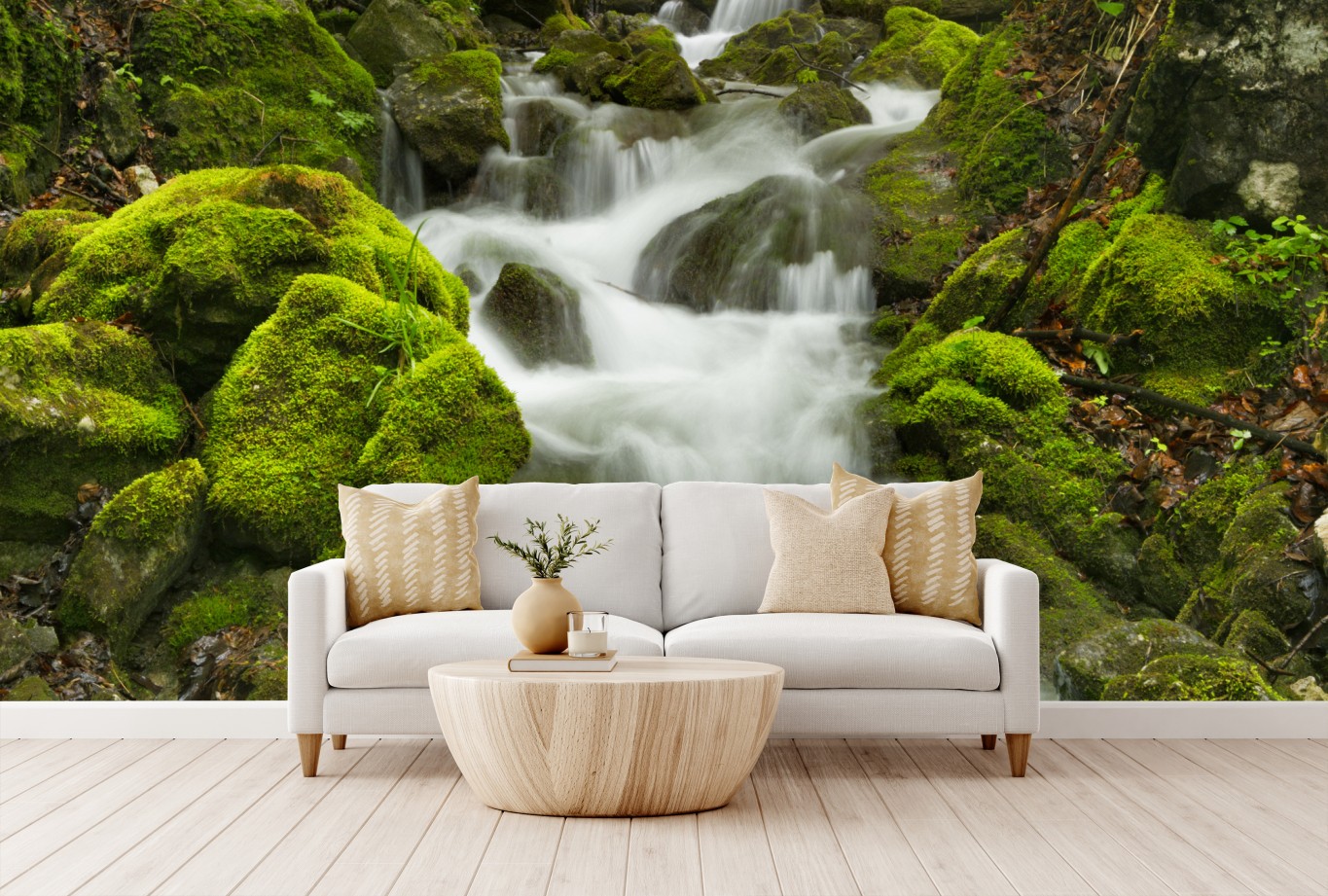 Przenieś kojący klimat mechowego wodospadu do swojego wnętrza dzięki temu żywemu pejzażowi, który tworzy naturalny, relaksujący akcent.