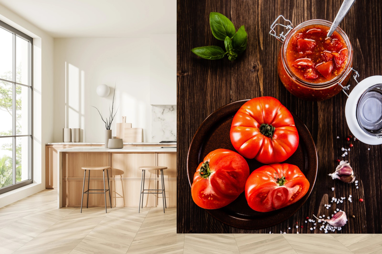 Fototapeta Świeże pomidory i domowy sos