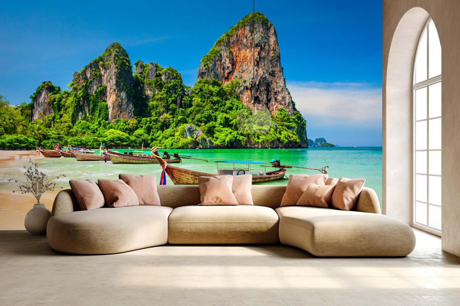 Fototapeta Długie łodzie na tropikalnej plaży, Tajlandia