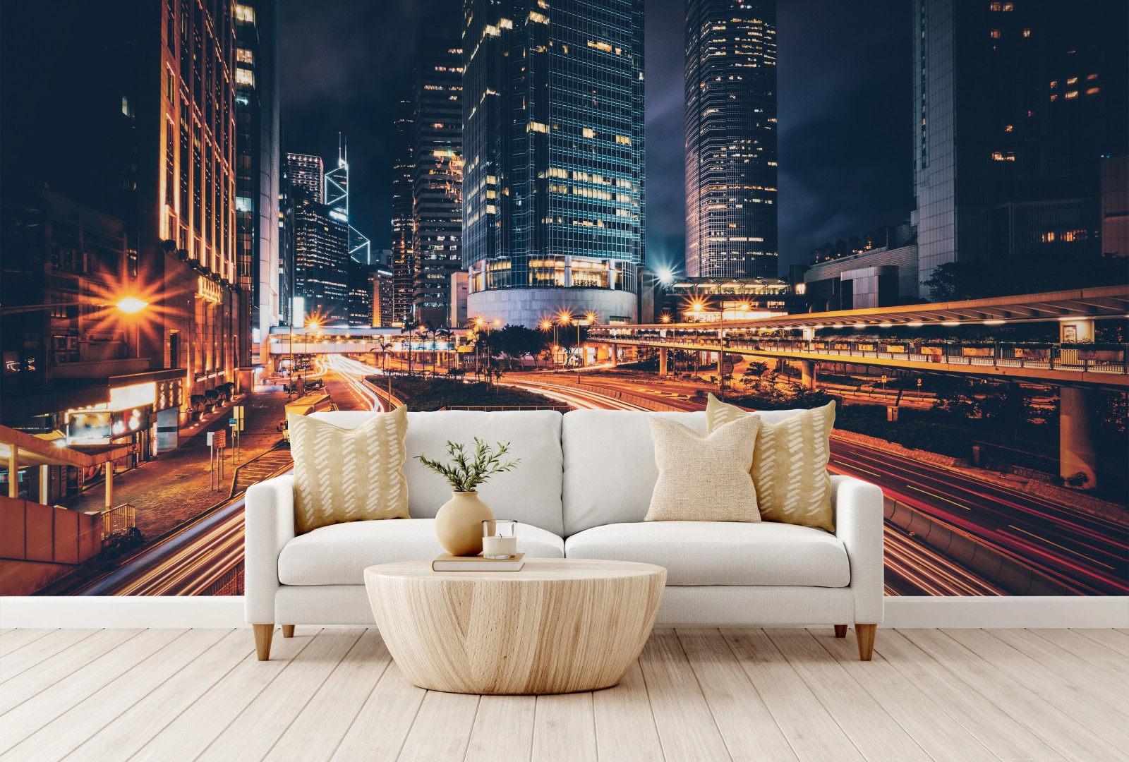 Fototapeta Nocne smugi świetlne nad miejską autostradą
