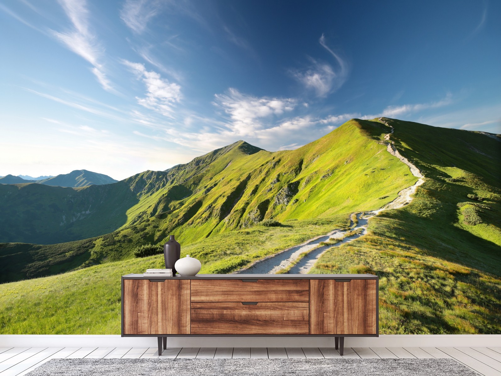 Fototapeta Słoneczny grzbiet górski ze ścieżką