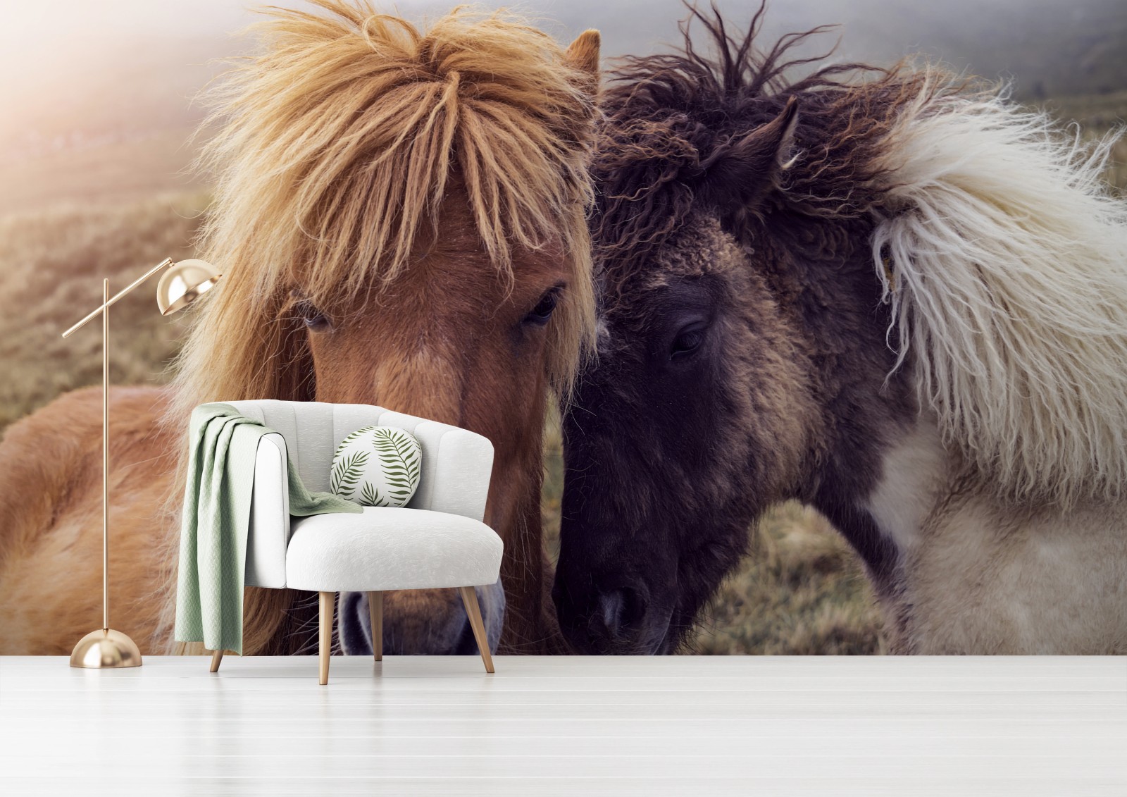 Fototapeta Dwa konie na mglistym wzgórzu, Wyspy Owcze