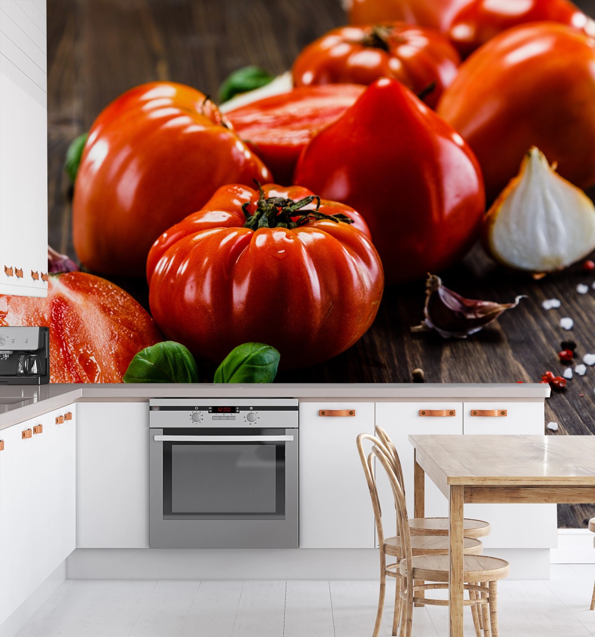Fototapeta Dojrzałe pomidory na rustykalnym stole