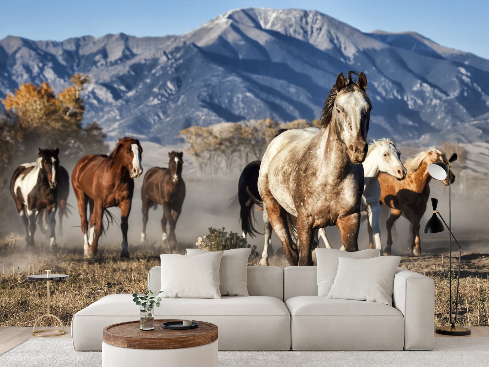 Fototapeta Dzikie konie galopujące po górskiej łące