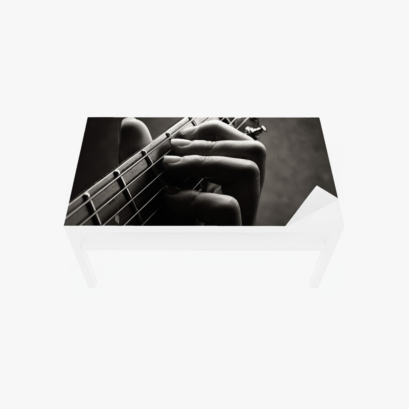 Naklejka na biurko i stół Zbliżenie dłoni gitarzysty na gryfie