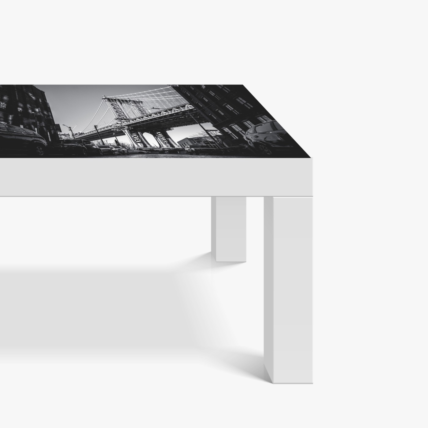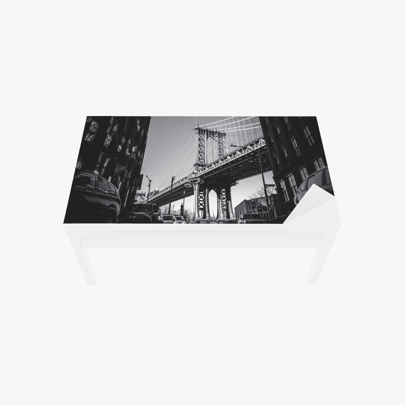 Naklejka na biurko i stół Most na Manhattanie z perspektywy brukowanej ulicy