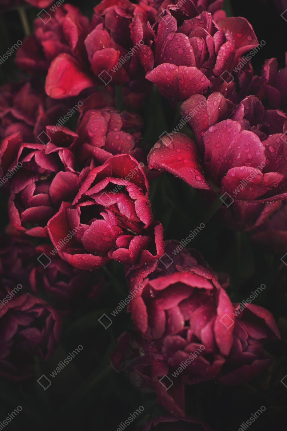 Naklejka na biurko i stół Głębokie bordowe kwiaty z kroplami wody