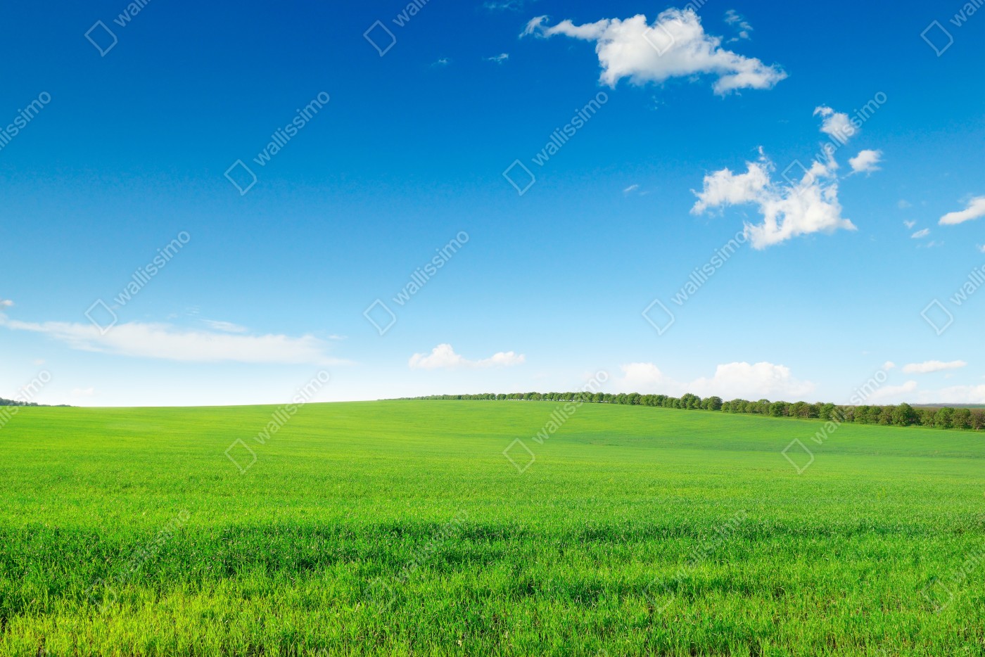 Naklejka na biurko i stół Spokojna zielona łąka pod niebieskim niebem