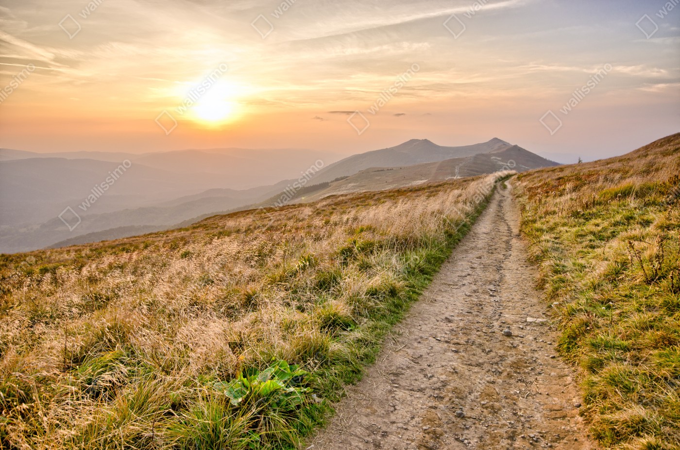 Naklejka na biurko i stół Szlak o zachodzie słońca w Bieszczadach