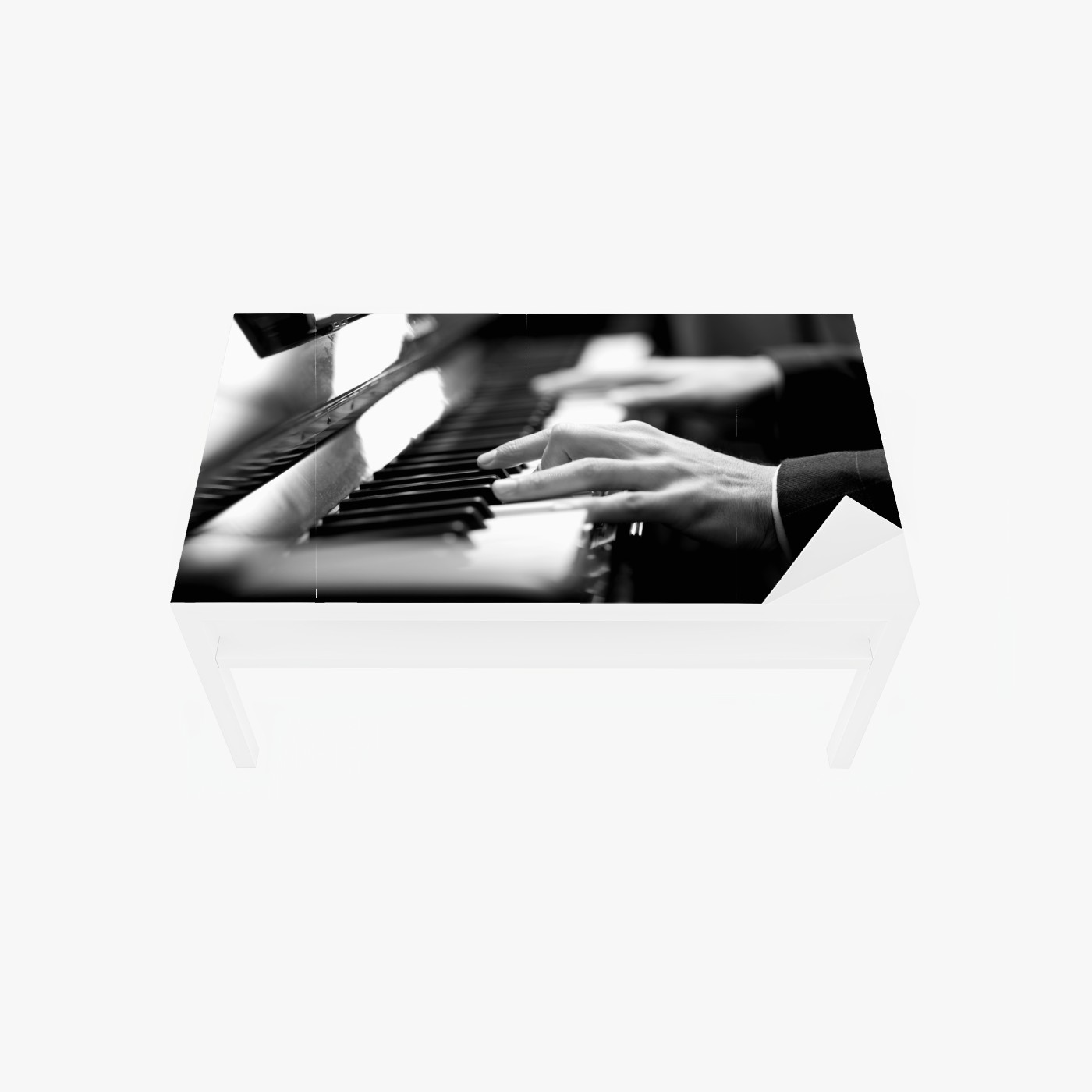Naklejka na biurko i stół Ręce przy klawiaturze fortepianu w czerni i bieli