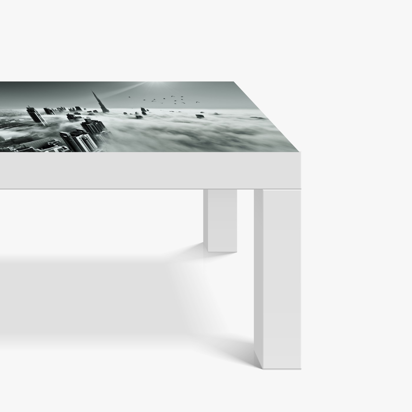 Naklejka na biurko i stół Mglista panorama Dubaju ponad chmurami
