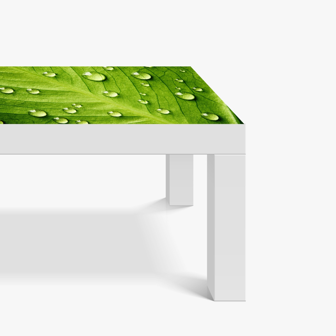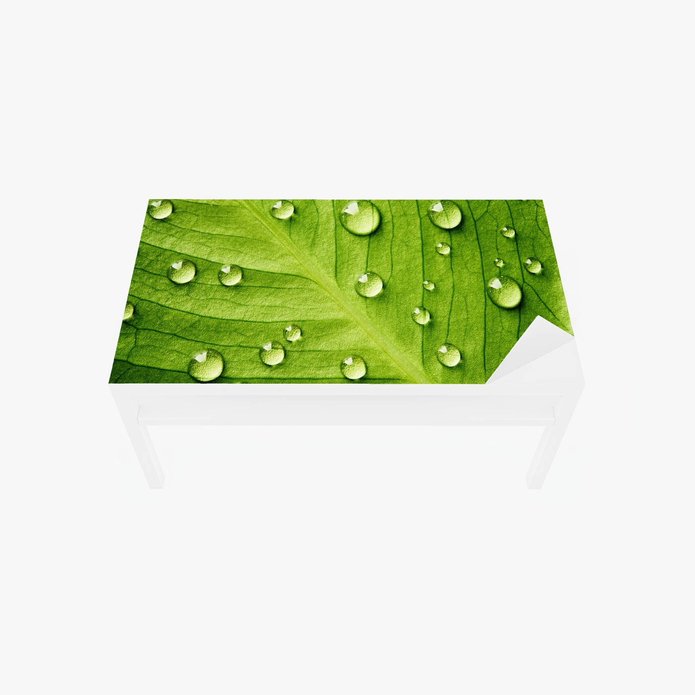 Naklejka na biurko i stół Świeży zielony liść z kroplami wody