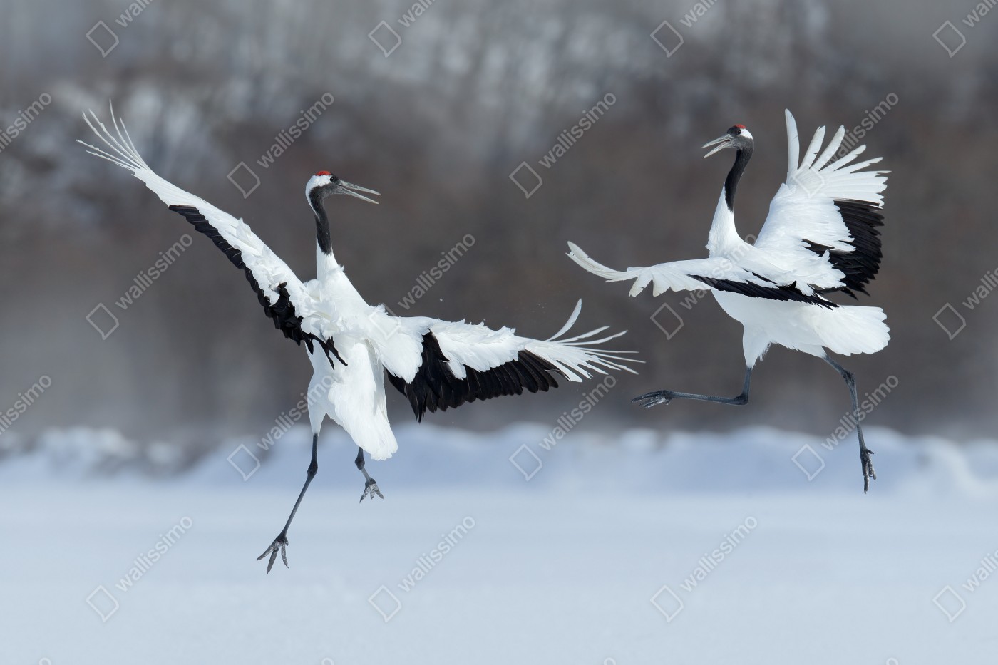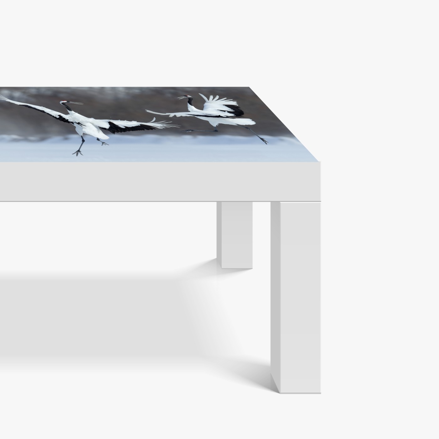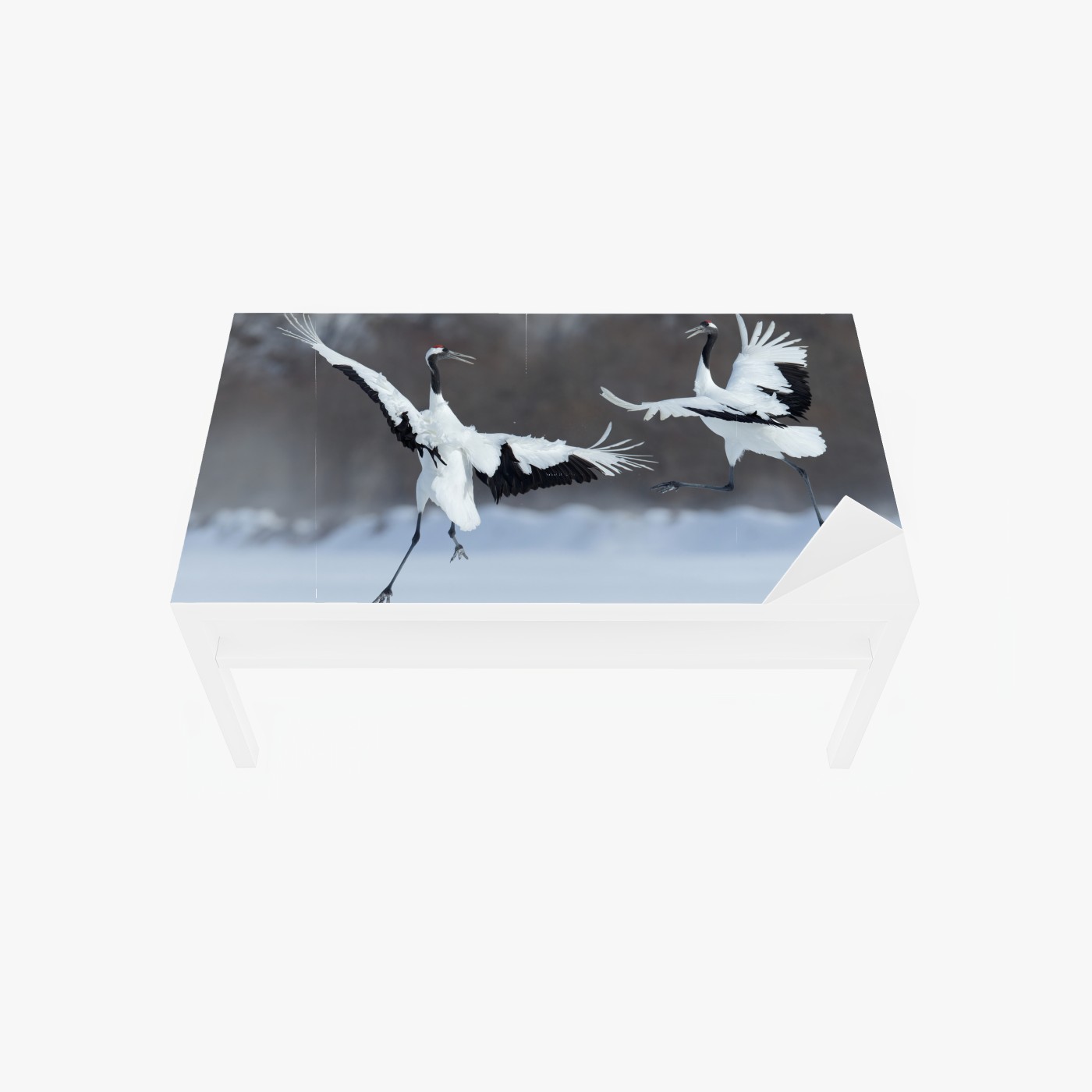 Naklejka na biurko i stół Tańczące żurawie koroniaste na śniegu, Hokkaido
