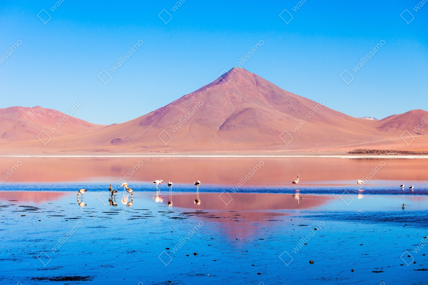 Naklejka na biurko i stół Flamingi nad Laguna Colorada, Boliwia