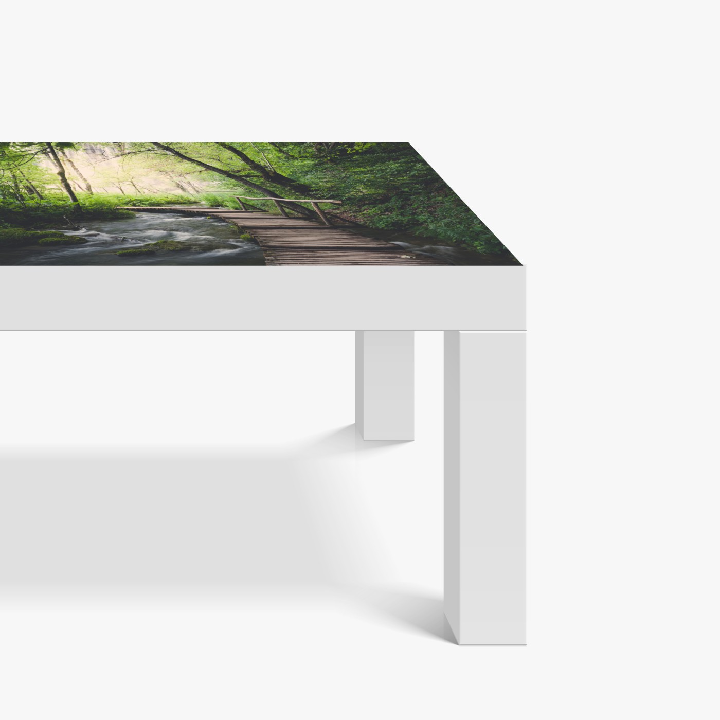 Naklejka na biurko i stół Spokojna drewniana kładka w zielonym lesie