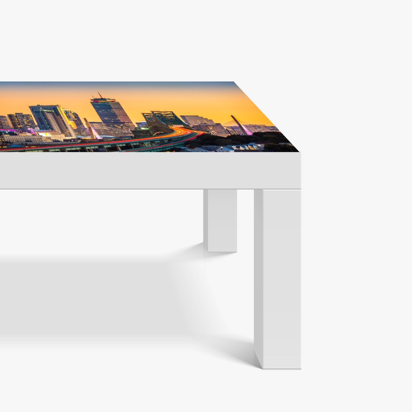 Naklejka na biurko i stół Panorama Bostonu o zachodzie słońca z mostami Zakim i Tobin