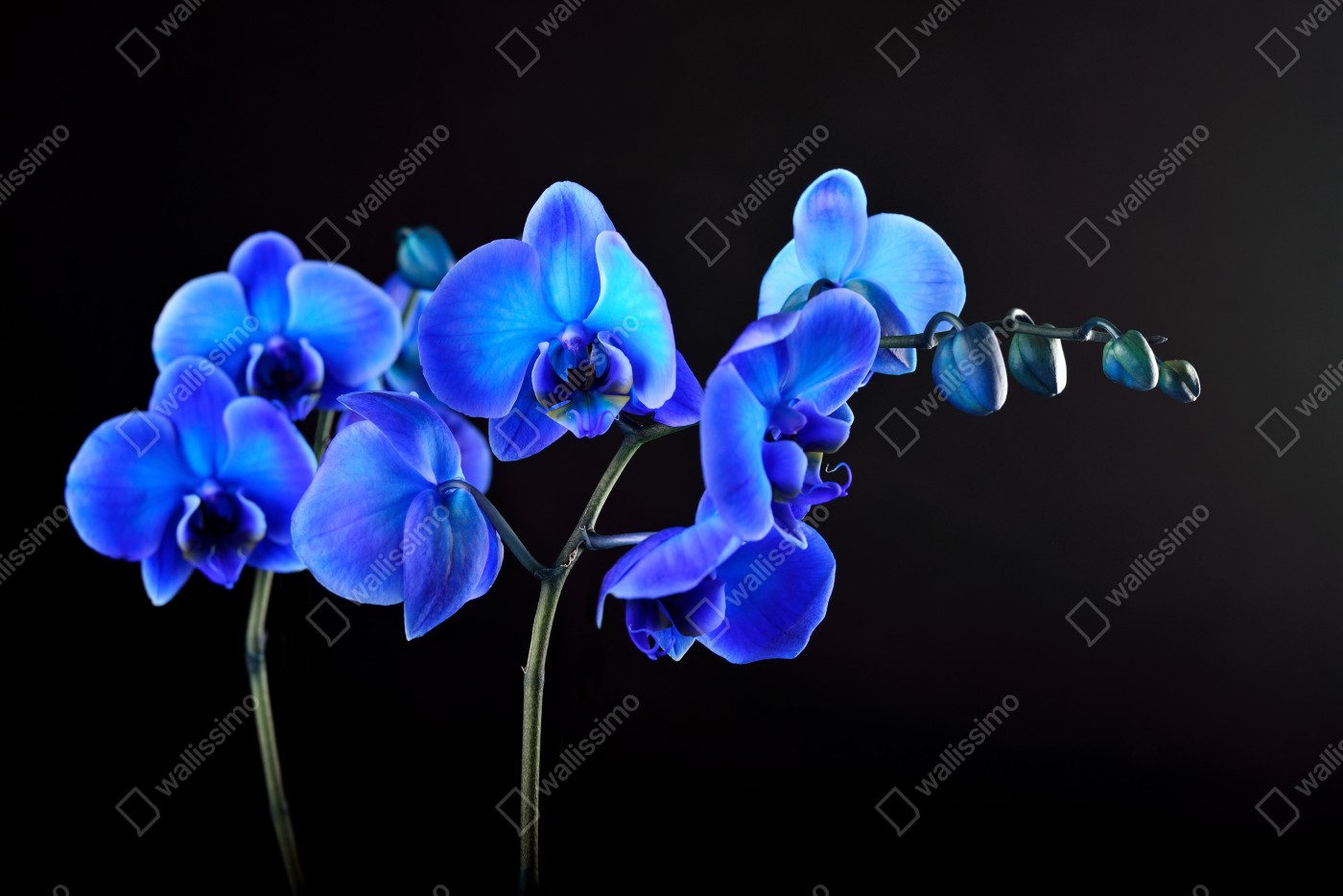 Naklejka na biurko i stół Intensywna niebieska orchidea na czarnym tle