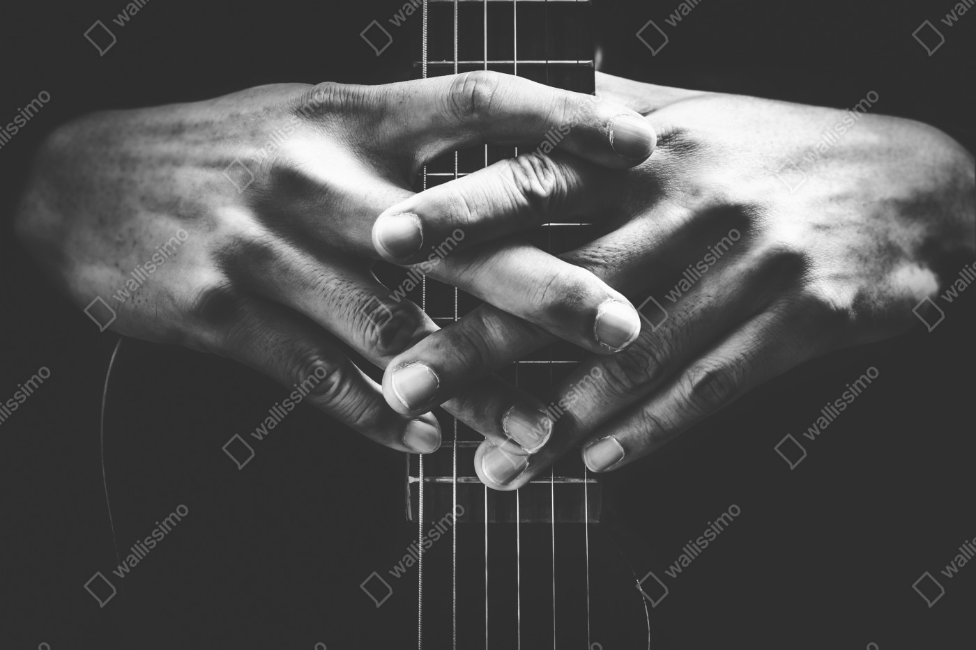 Naklejka na biurko i stół Splątane ręce na strunach gitary