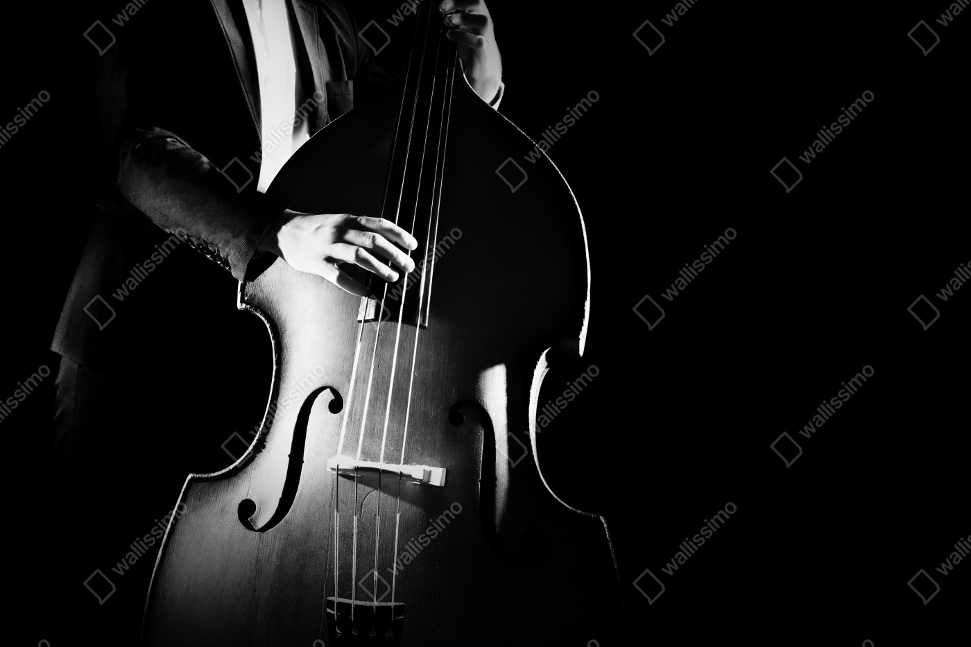 Naklejka na biurko i stół Kontrabasista w dramatycznym świetle