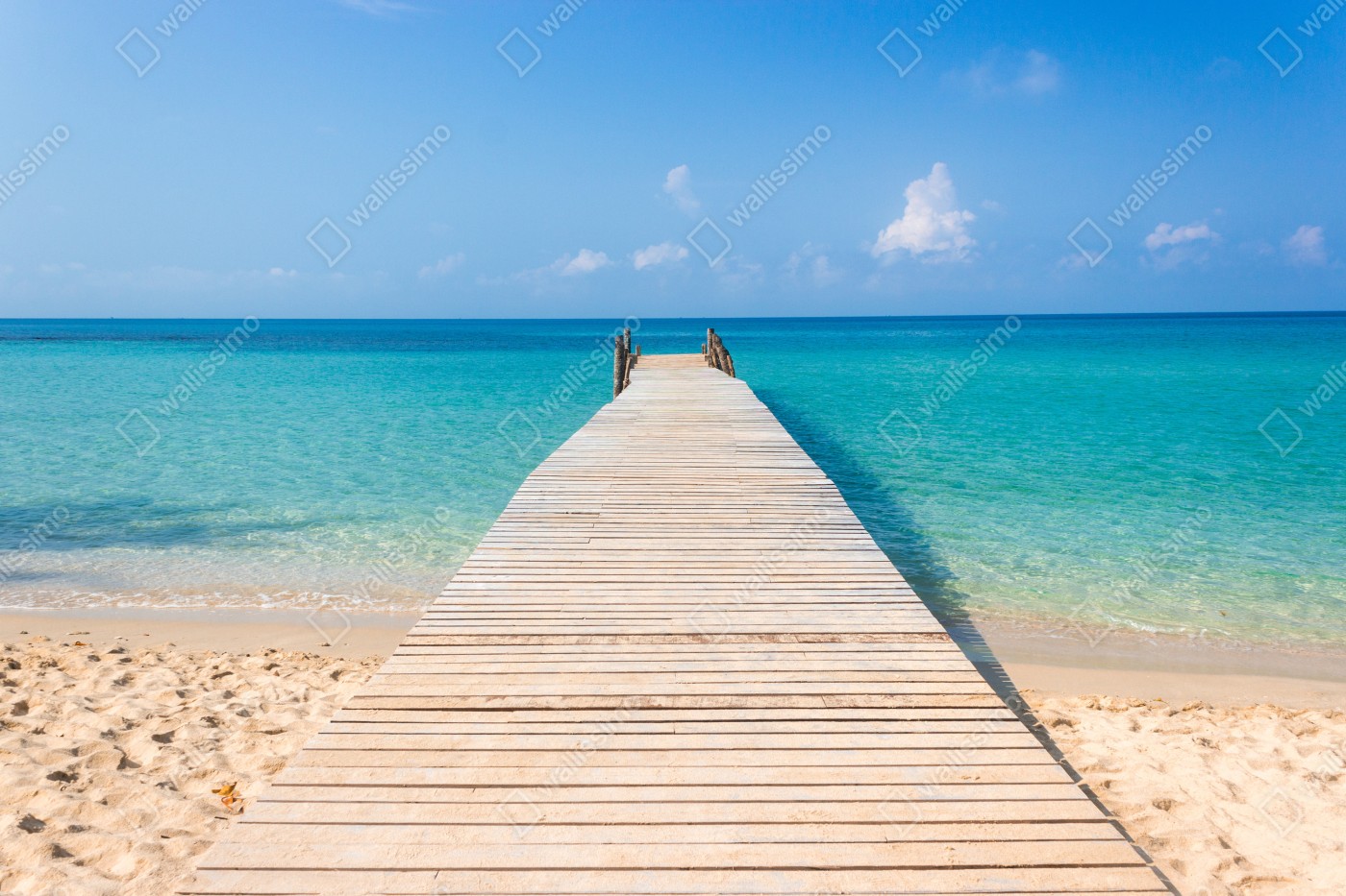 Naklejka na biurko i stół Drewniany pomost nad turkusowym morzem