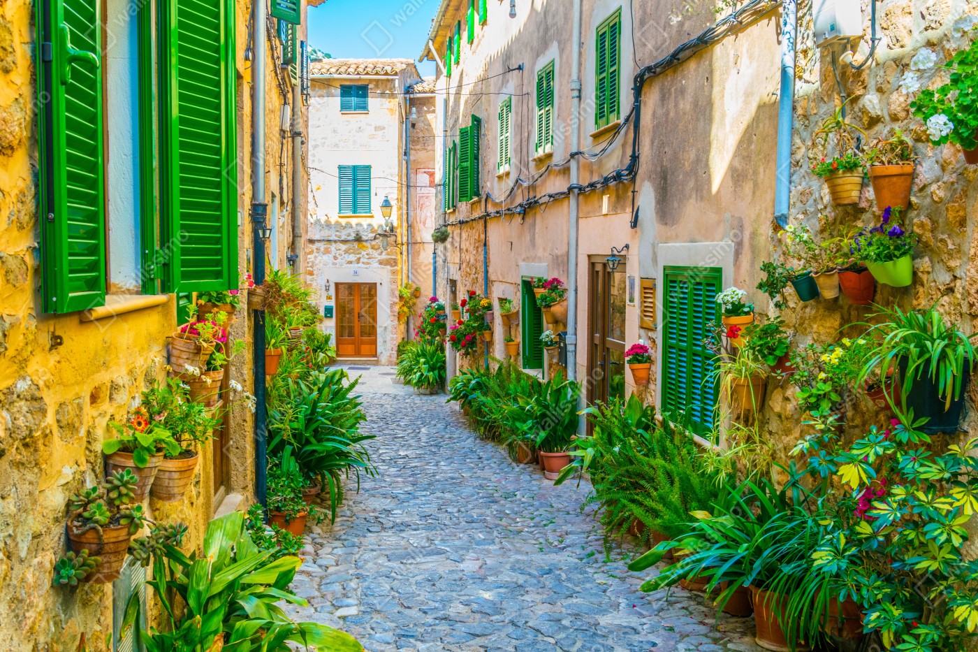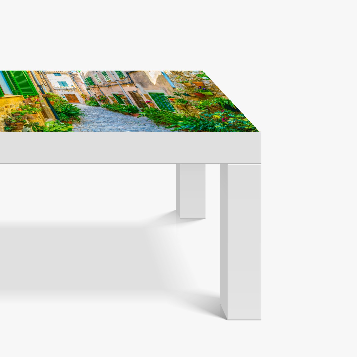 Naklejka na biurko i stół Słoneczna uliczka z zielonymi okiennicami