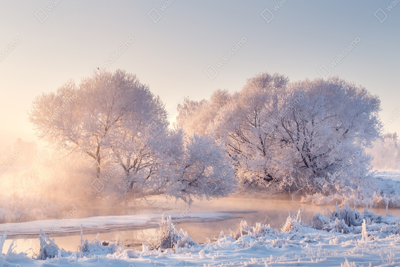 Naklejka na biurko i stół Oszronione drzewa o świcie