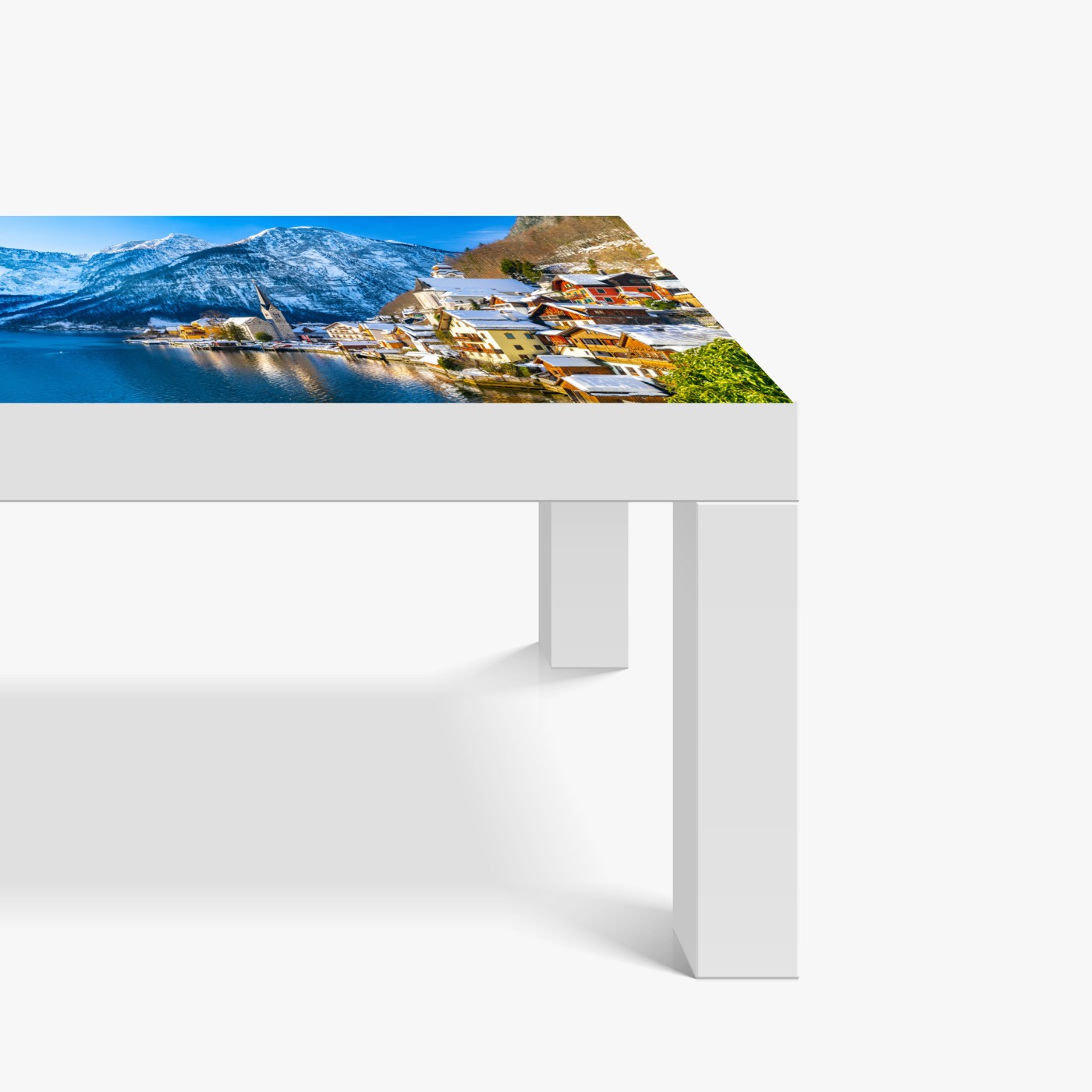 Naklejka na biurko i stół Zimowy spokój w Hallstatt — alpejska wioska nad jeziorem
