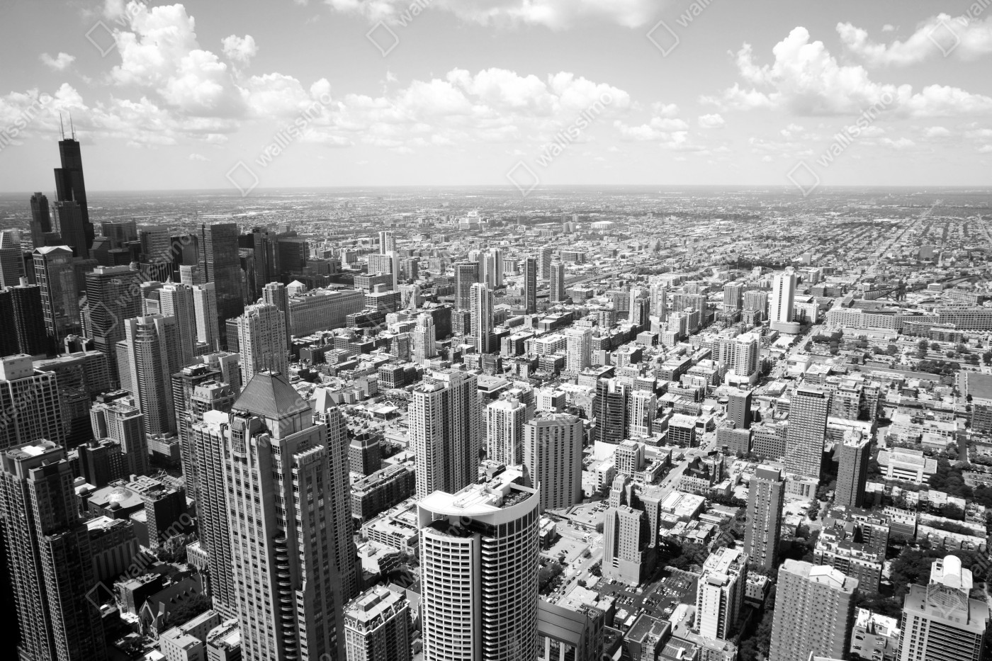 Naklejka na biurko i stół Chicago panorama miasta w odcieniach szarości