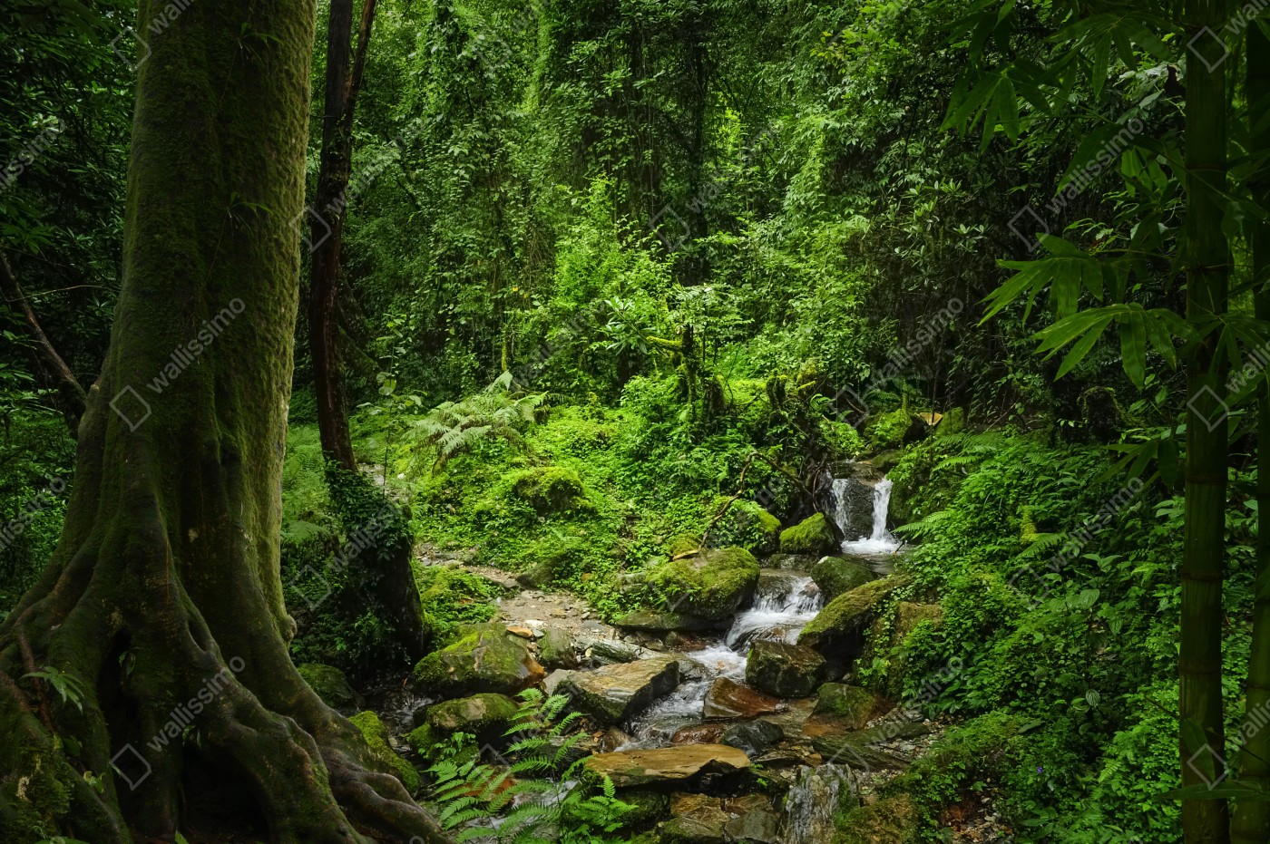 Naklejka na biurko i stół Bujny zielony leśny wodospad