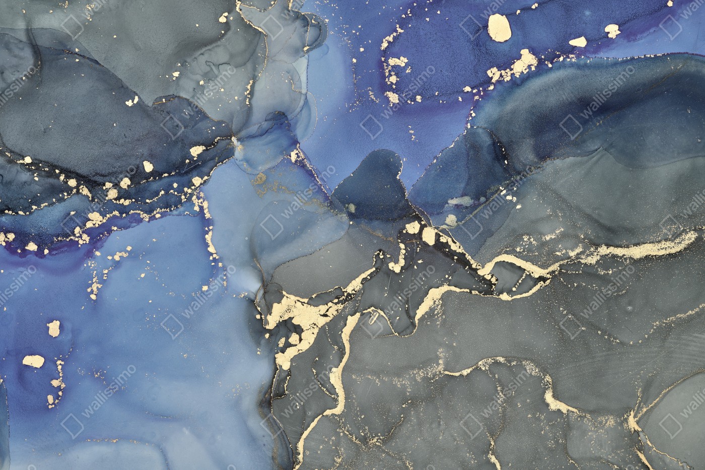 Naklejka na biurko i stół Luksusowa niebiesko-złota abstrakcja fluidalna