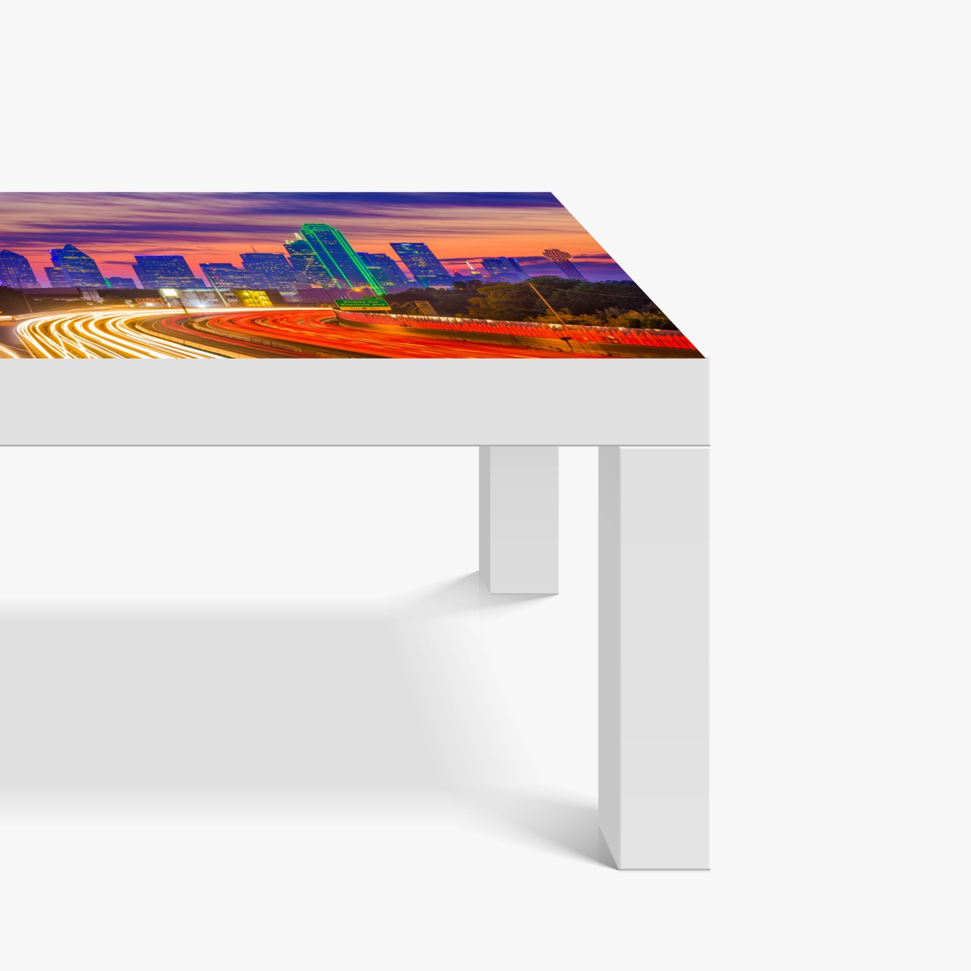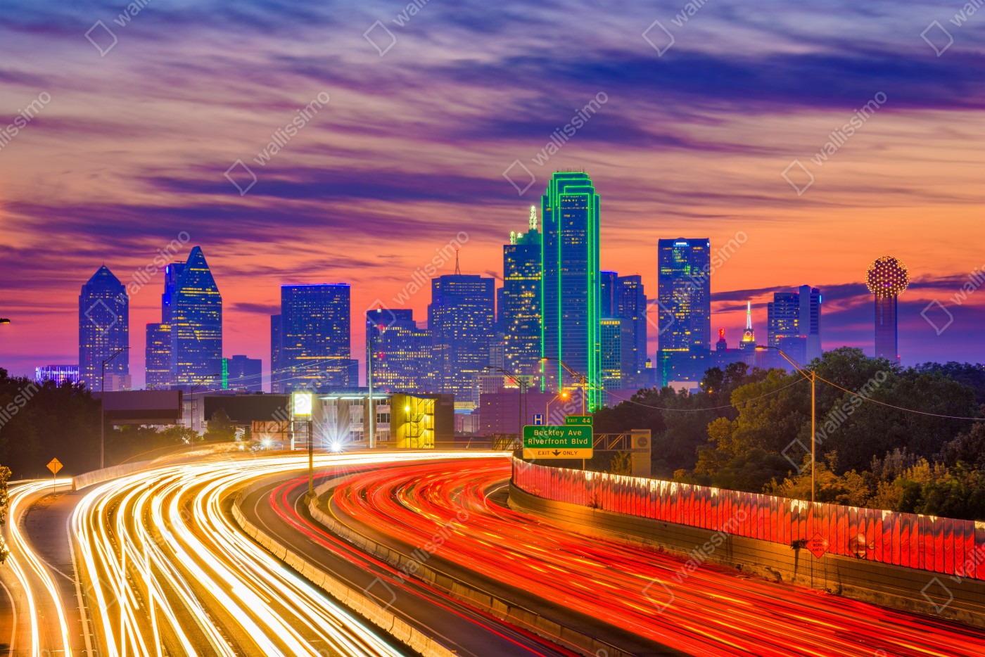 Naklejka na biurko i stół Panorama Dallas o zachodzie słońca z świetlnymi smugami autostrady