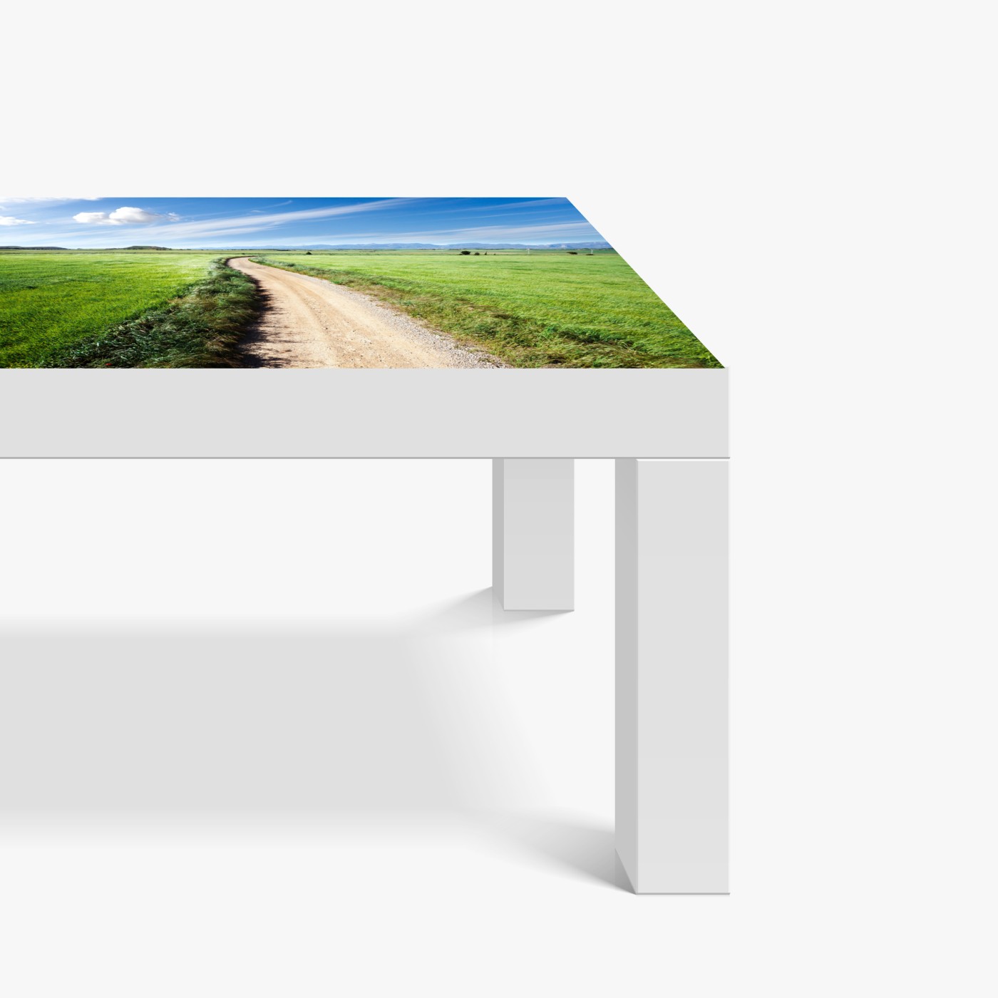 Naklejka na biurko i stół Wijąca się wiejska droga przez zielone łąki