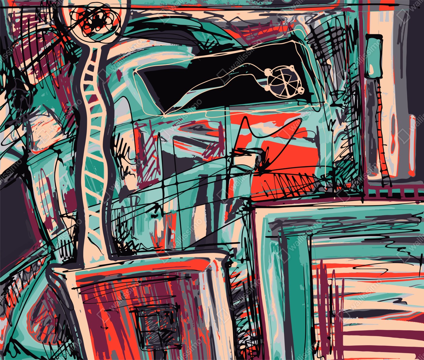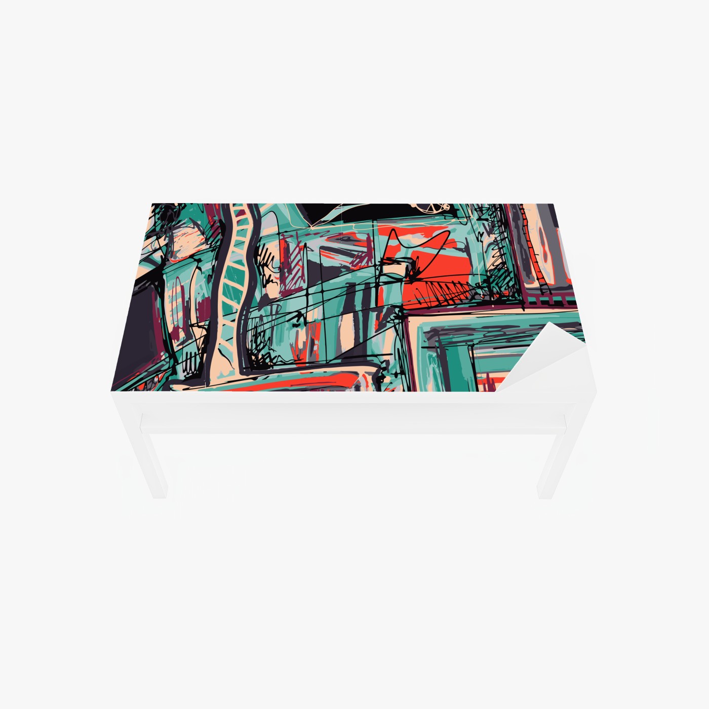 Naklejka na biurko i stół Turkusowo-koralowa abstrakcyjna kompozycja
