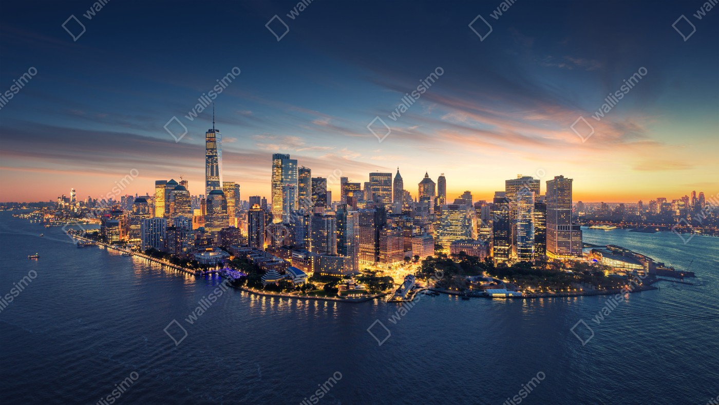 Naklejka na biurko i stół Manhattan panorama o wschodzie słońca