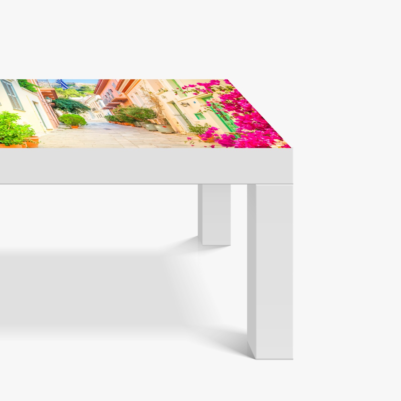 Naklejka na biurko i stół Słoneczna grecka uliczka z bougainvilleą