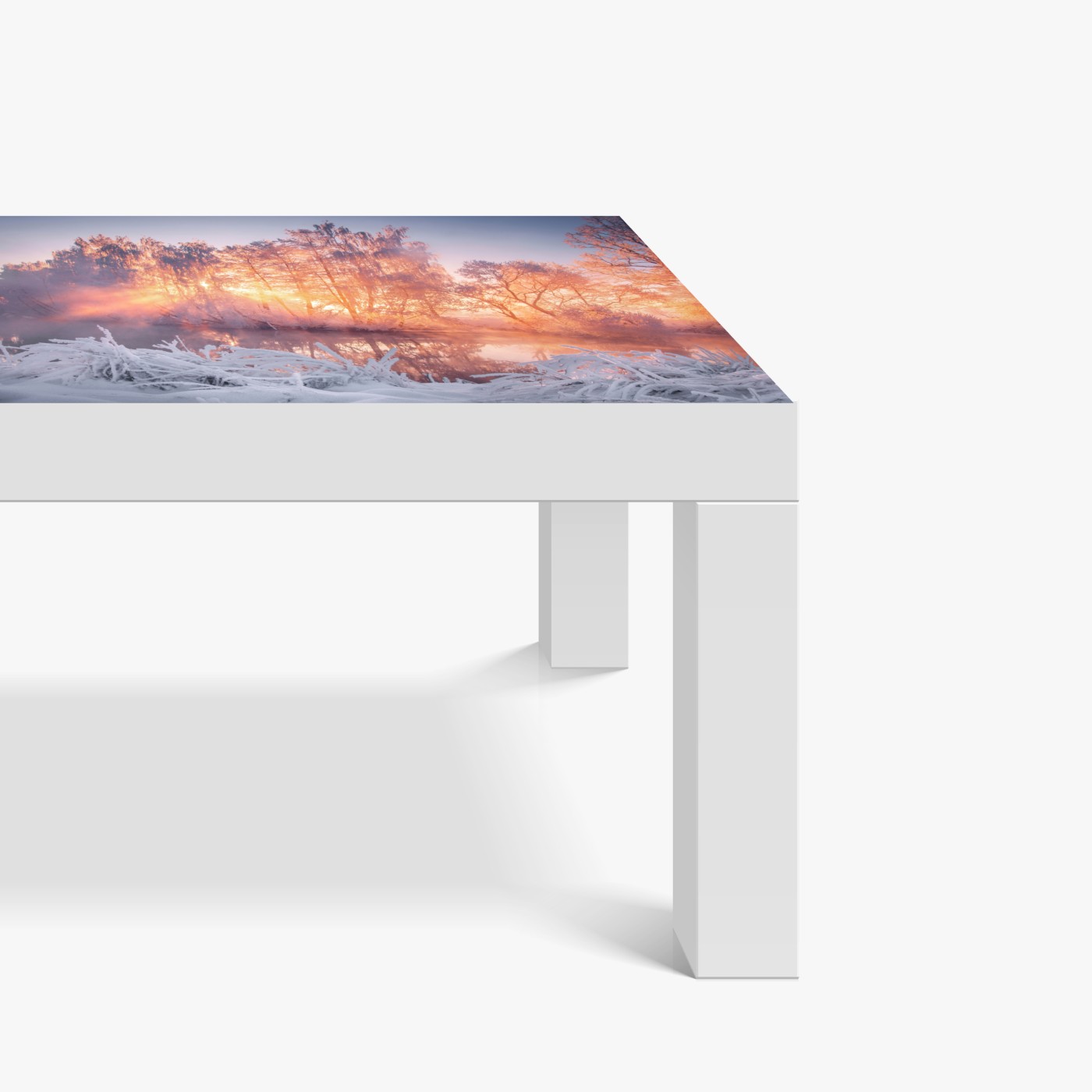 Naklejka na biurko i stół Zimowy wschód słońca nad zamarzniętą rzeką