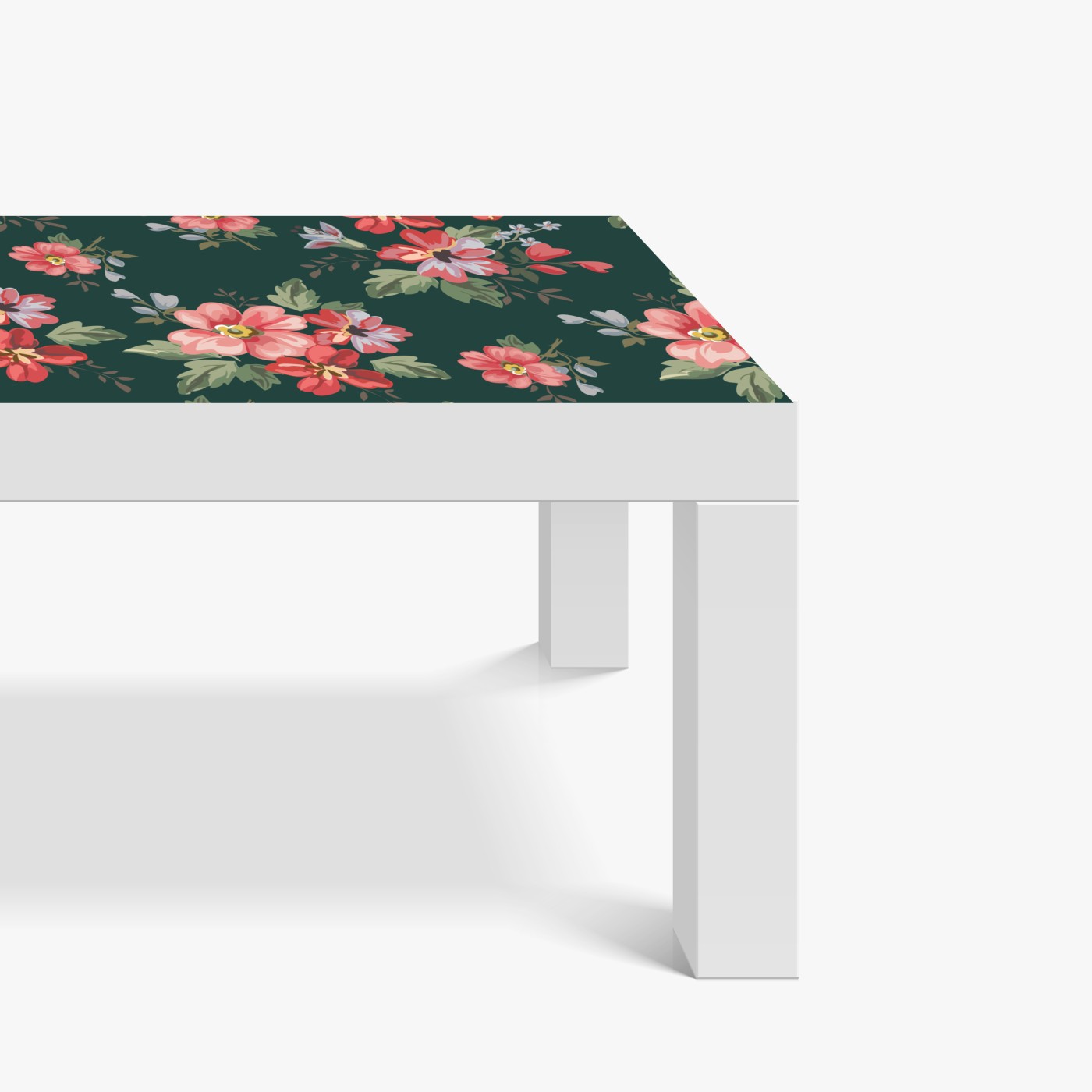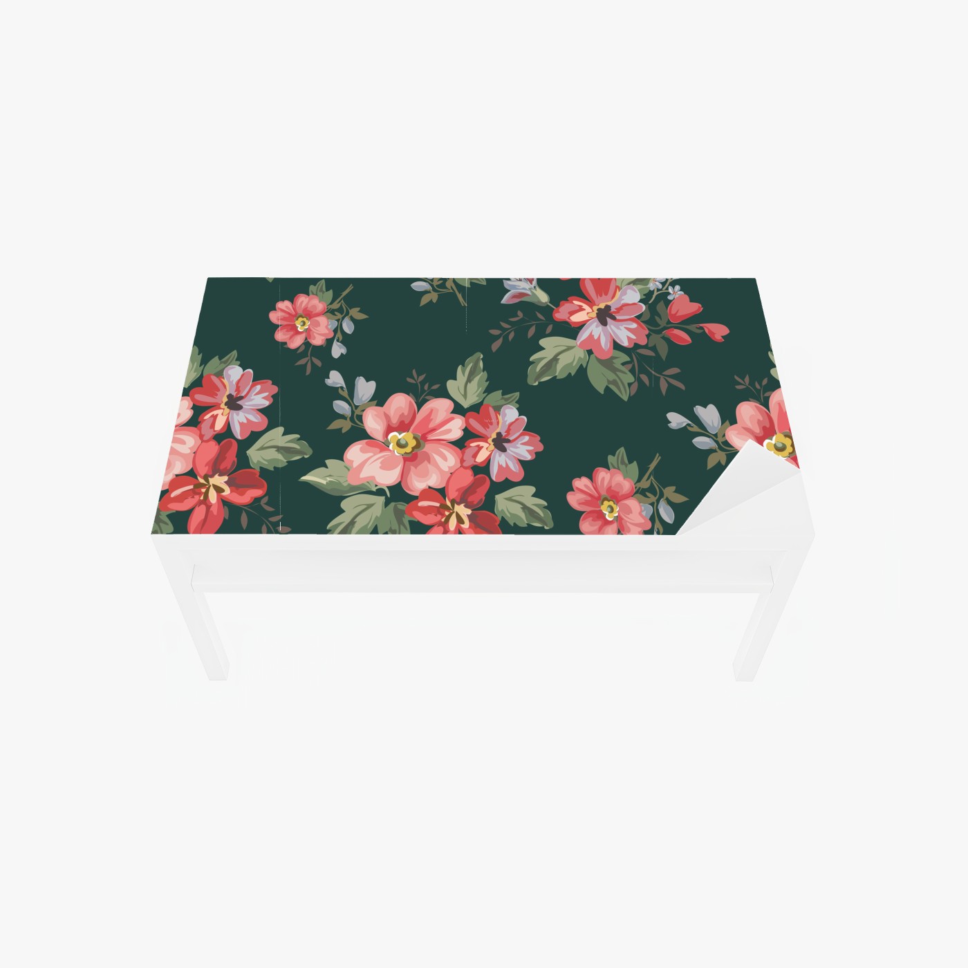 Naklejka na biurko i stół Vintage różowy wzór kwiatowy na głębokiej zieleni