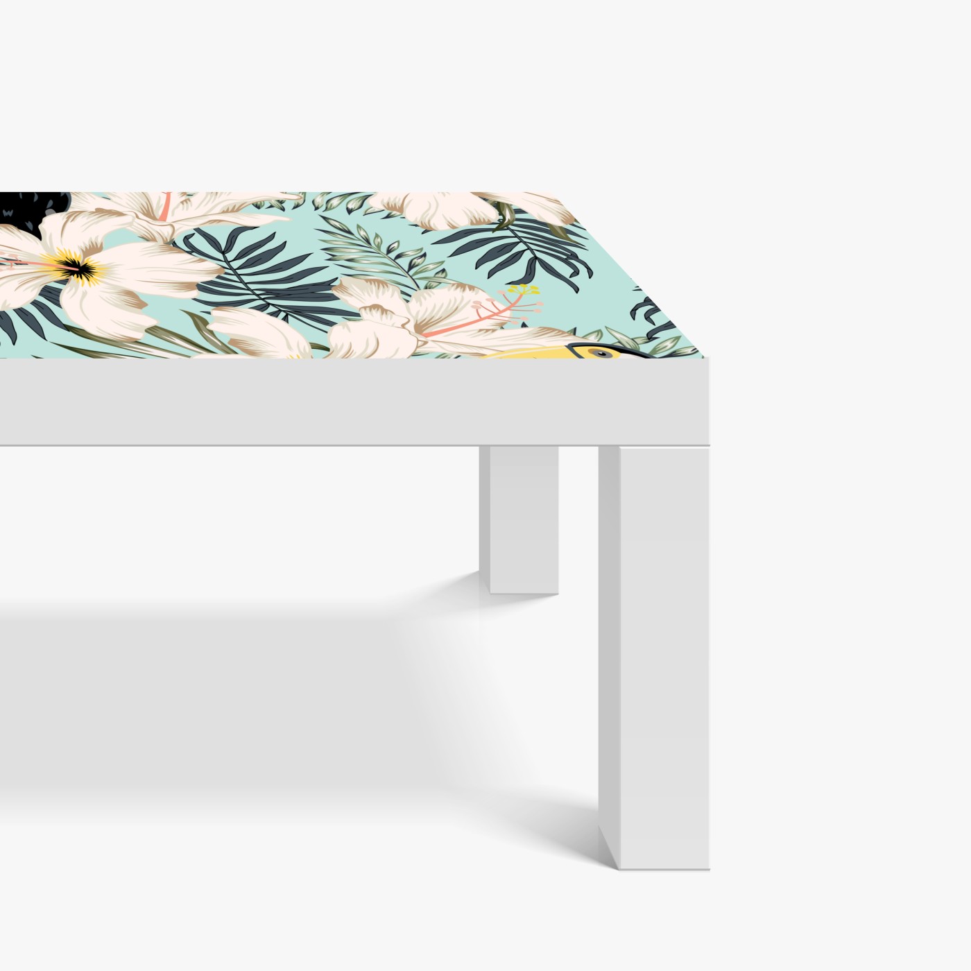 Naklejka na biurko i stół Tropikalny wzór z tukanem i kwiatami