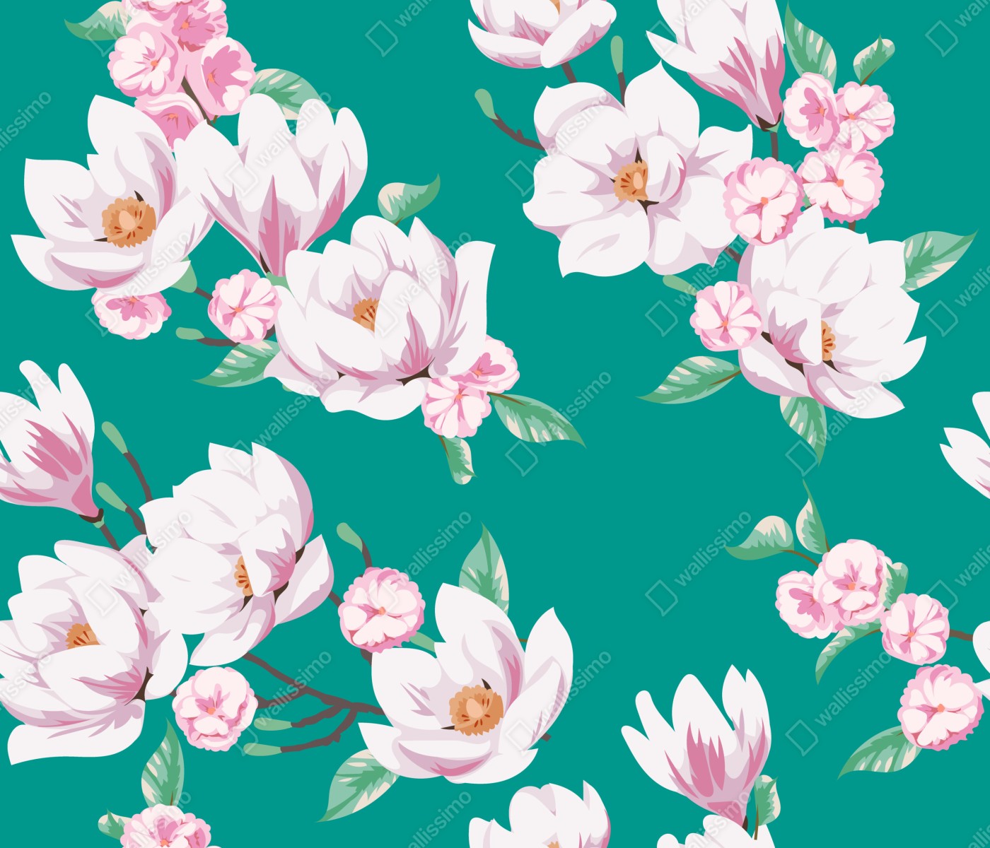 Naklejka na biurko i stół Pastelowy wzór magnolii na turkusowym tle