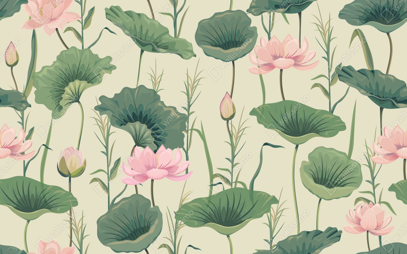 Naklejka na biurko i stół Delikatny ogród lotosów wzór botaniczny