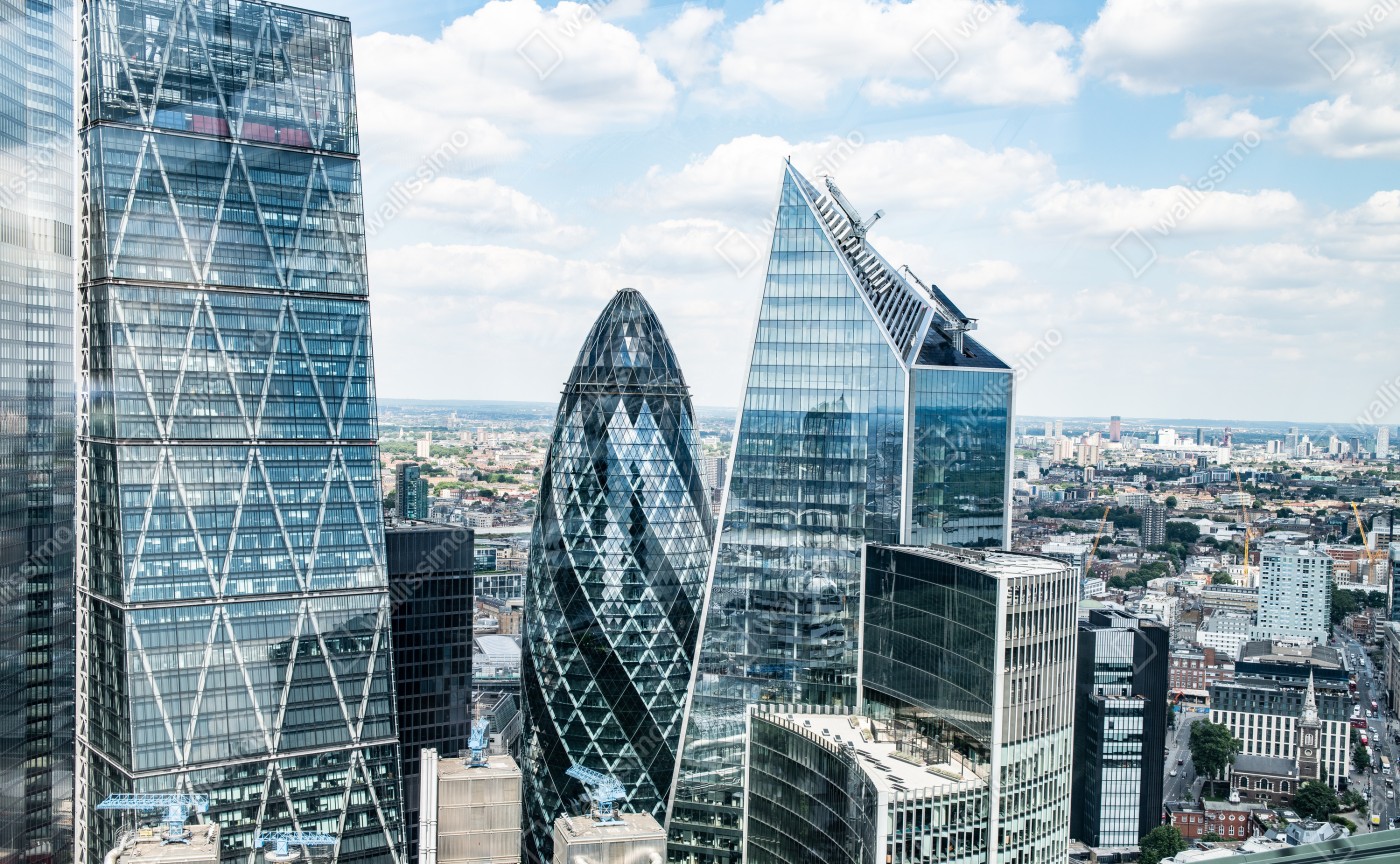 Naklejka na biurko i stół Nowoczesna panorama Londynu ze szklanymi drapaczami chmur