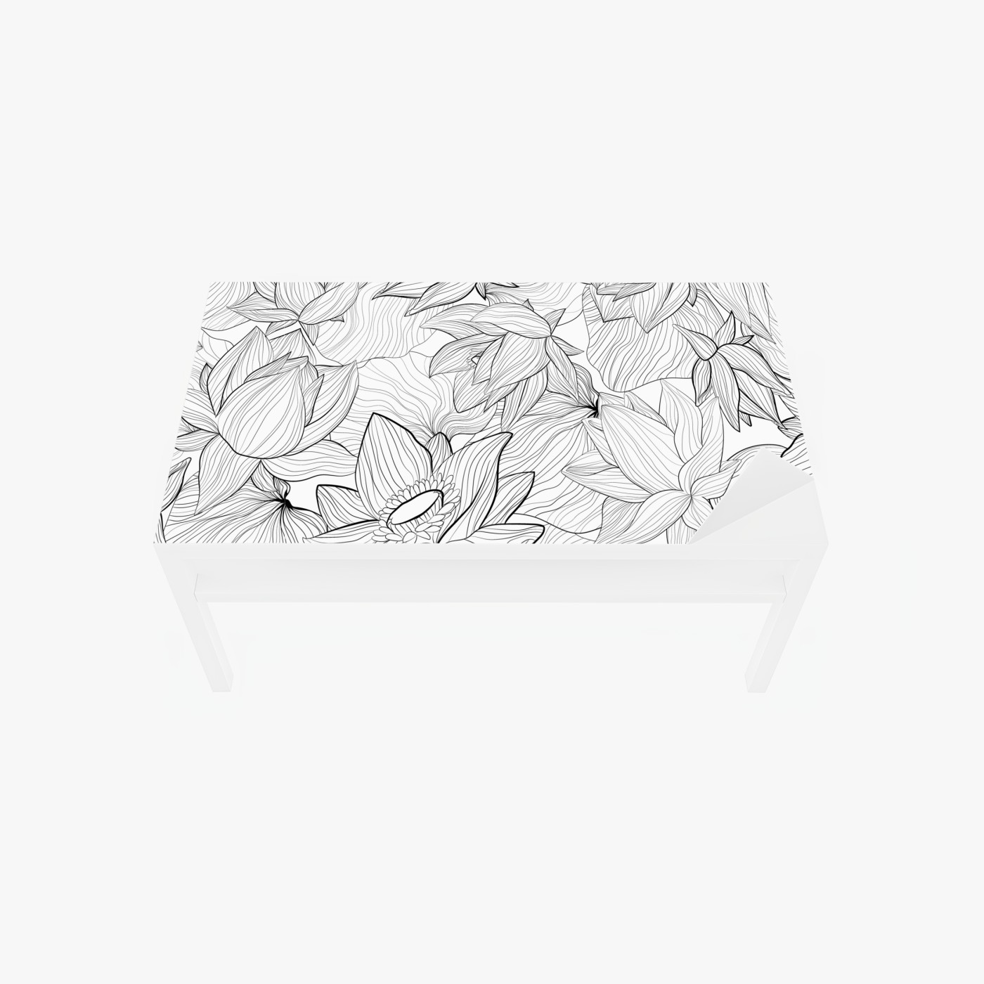 Naklejka na biurko i stół Delikatny rysunek lotosu w czerni i bieli