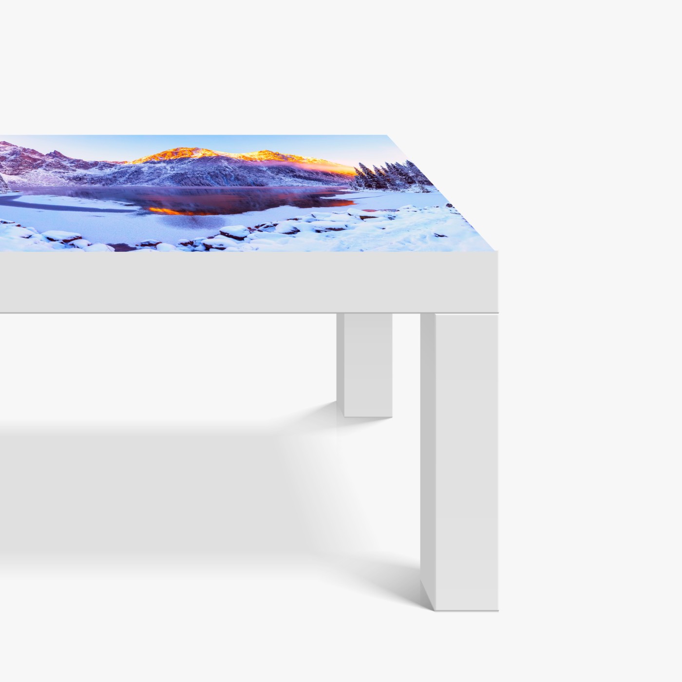 Naklejka na biurko i stół Góry skąpane w świetle wschodu nad zamarzniętym jeziorem