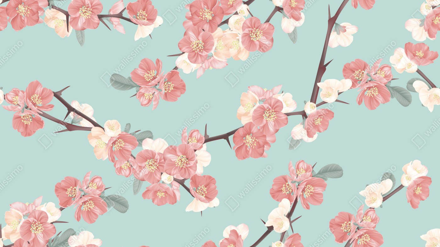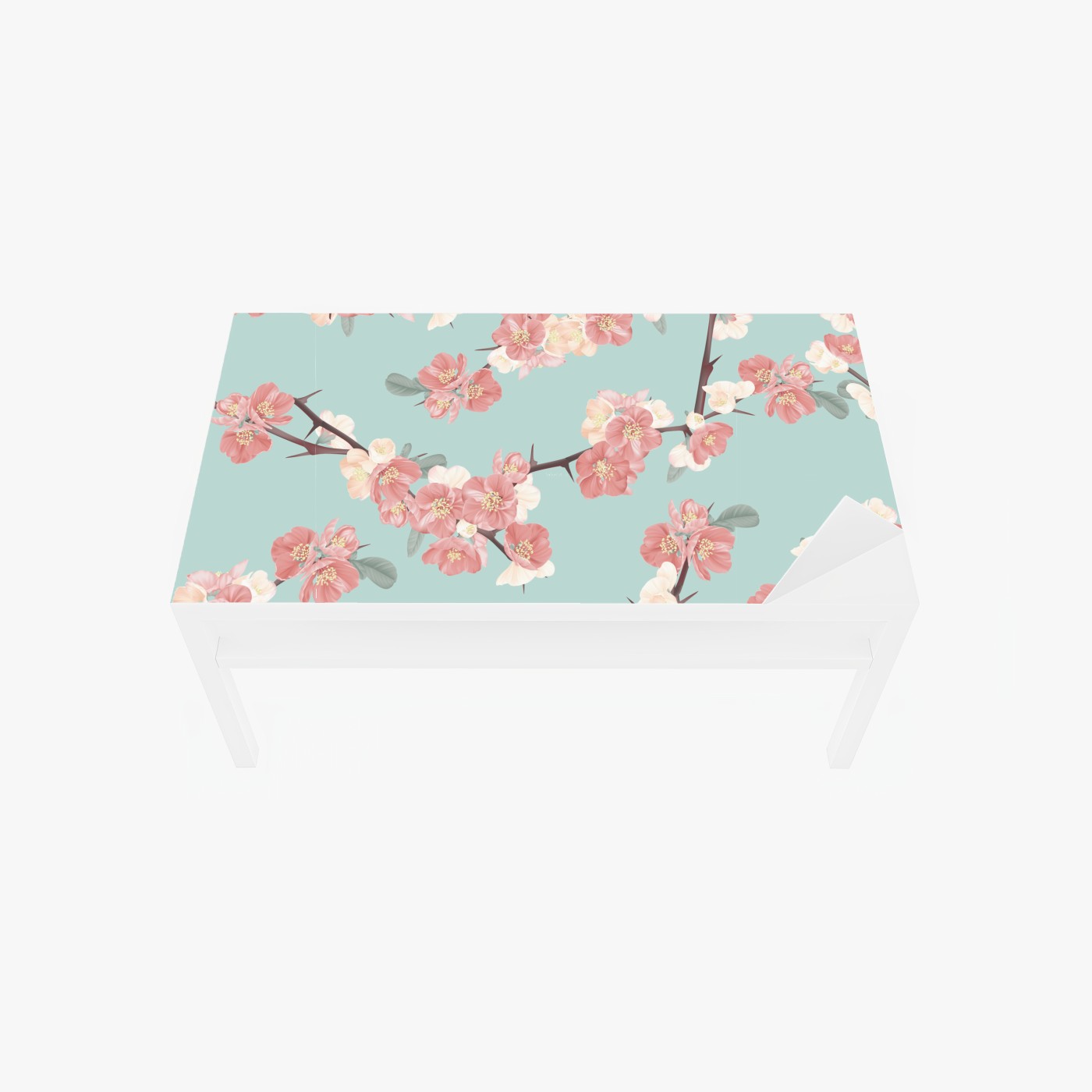Naklejka na biurko i stół Pastelowy wzór kwiatów wiśni na miętowym tle