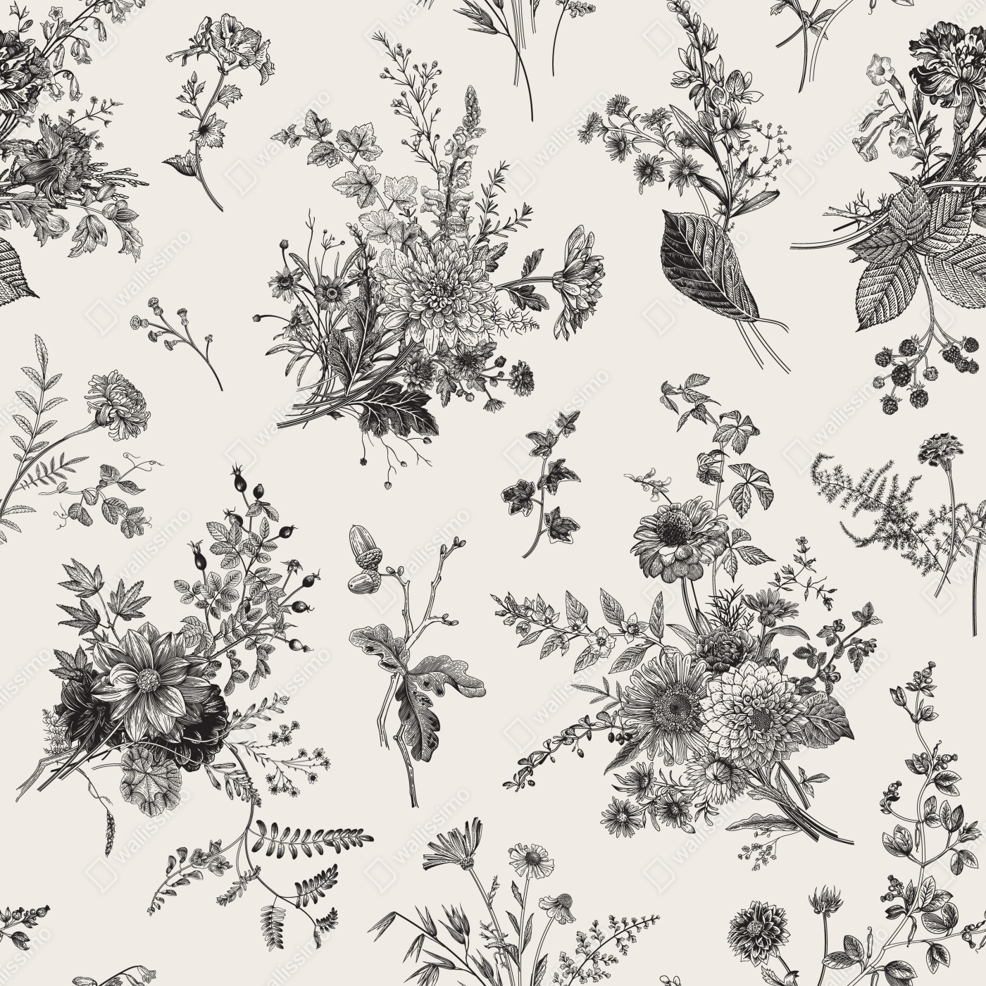 Naklejka na biurko i stół Klasyczny czarno-biały wzór kwiatowy