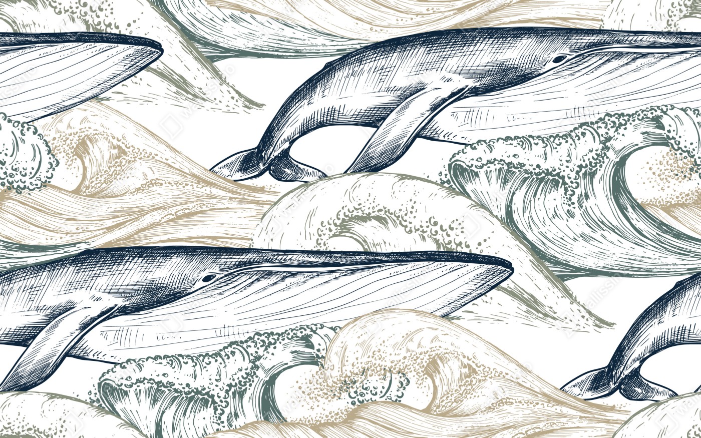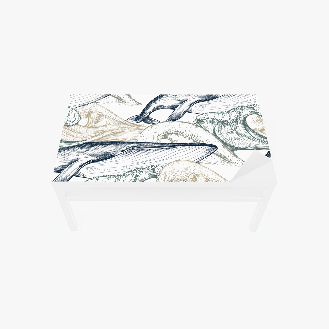 Naklejka na biurko i stół Rysunek wielorybów i morskich fal