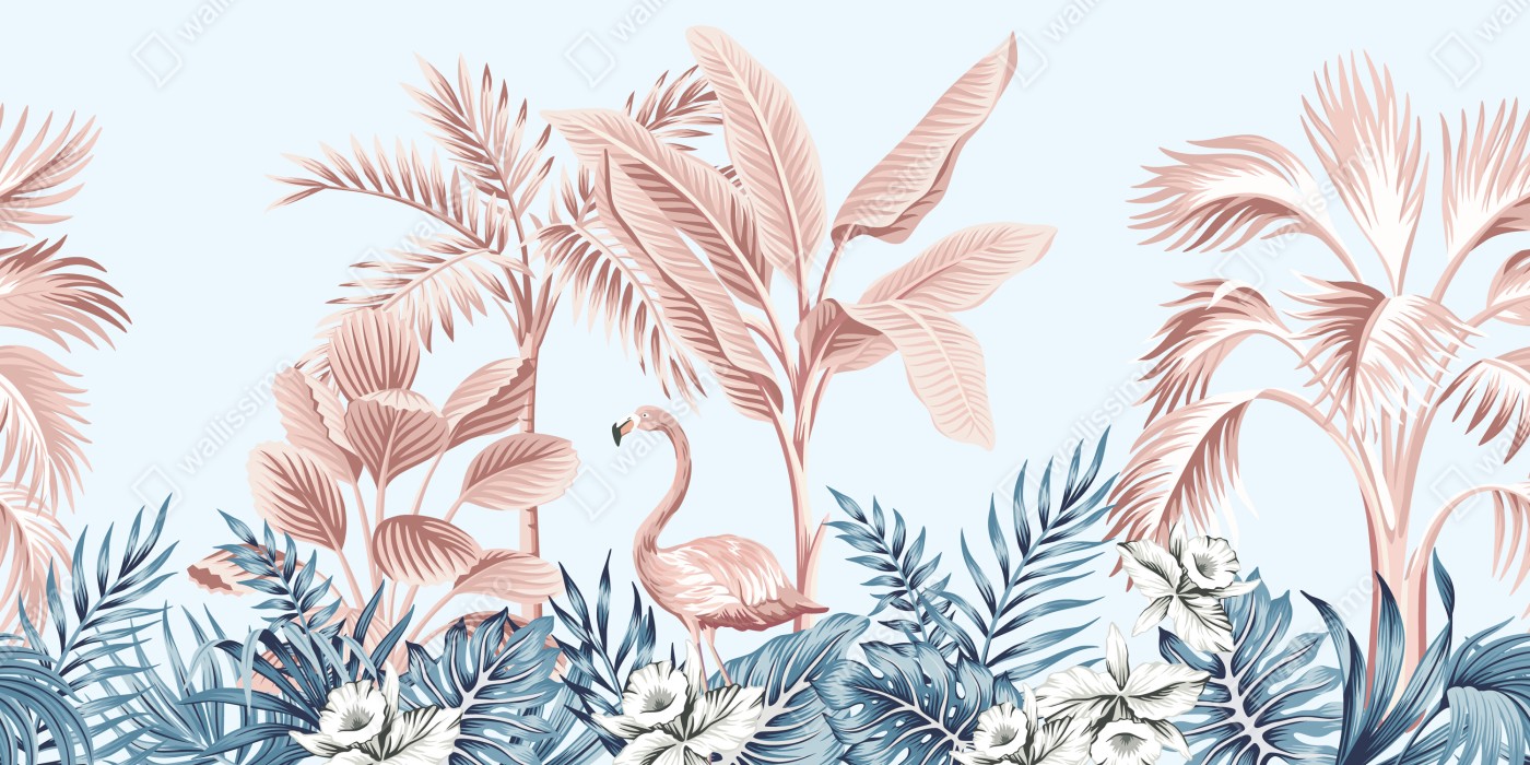 Naklejka na biurko i stół Pastelowy tropikalny ogród z flamingiem