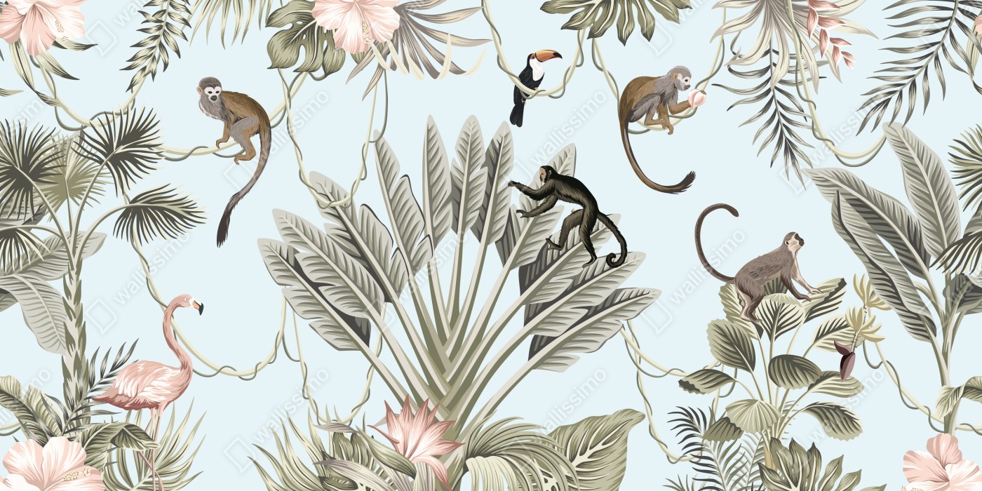 Naklejka na biurko i stół Pastelowy wzór dżungli z zwierzętami